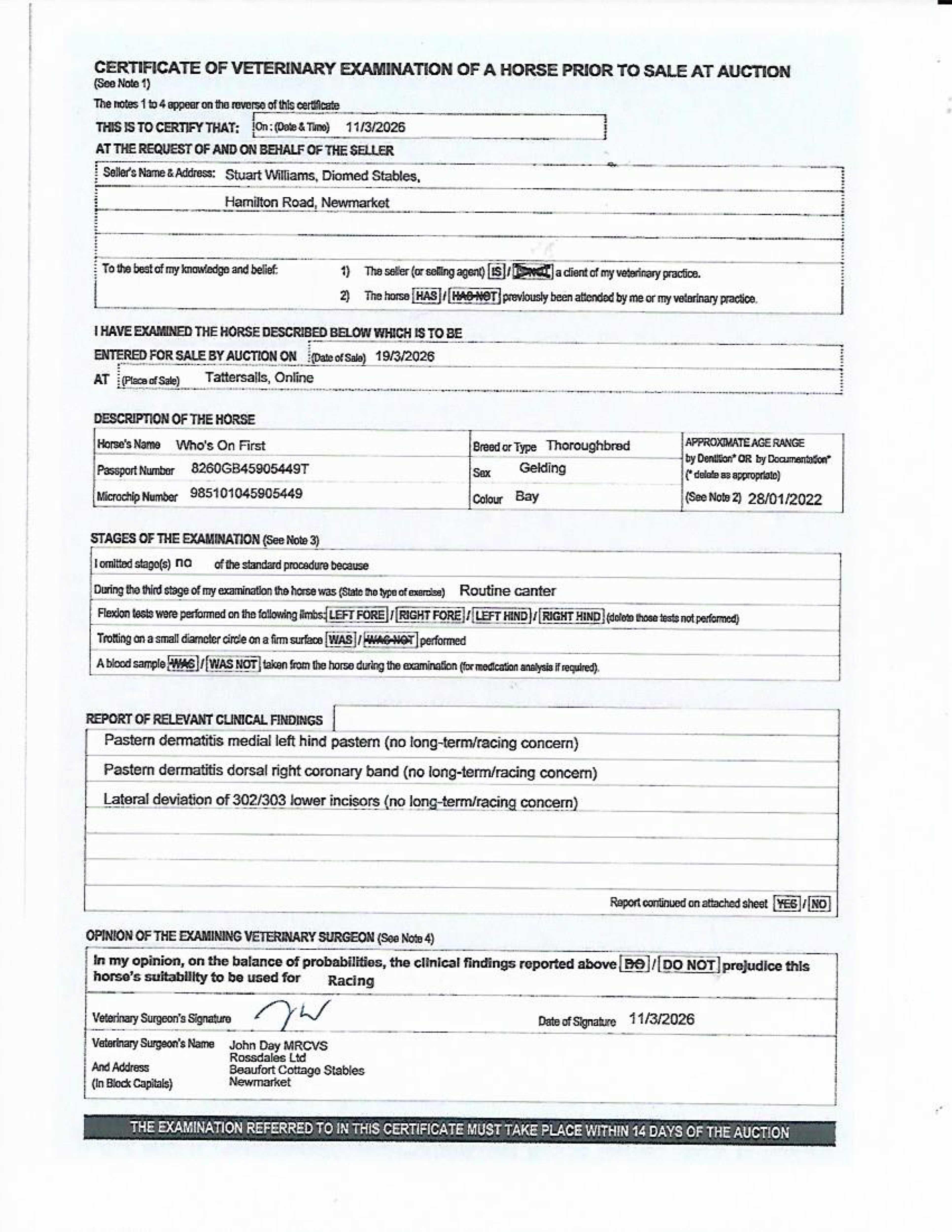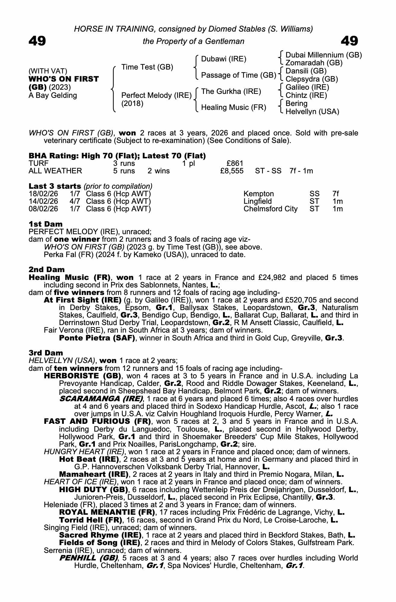 Vendor's Notes: Who's On First: Has won two of his last three starts. He's bred to improve and runs over 7f - 1m with the possibility of getting further. Will make someone a nice fun horse.
