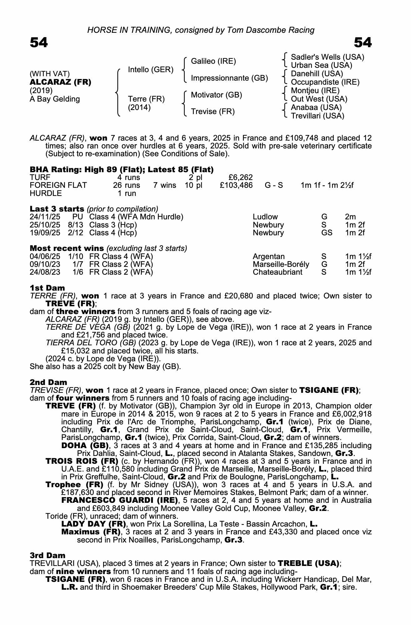 Online Sale - 13th August 2025 lot 95 Terre de Vega (GB) (G. by Lope de Vega (IRE)), Athassel House Stud, Ireland (P. Twomey)=>Fairview Stable 3,600 gns