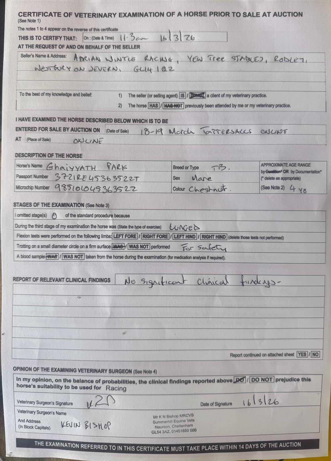 🇬🇧 Location: Adrian Wintle, Yew Tree Stables, Rodley Westbury -on -Seven, GL141QZ, United Kingdom