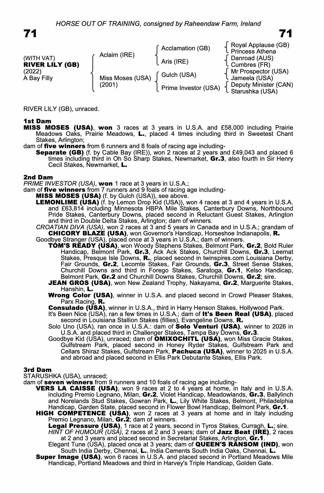 Vendor's Notes: Maiden Filly, ready for cover. In under lights.