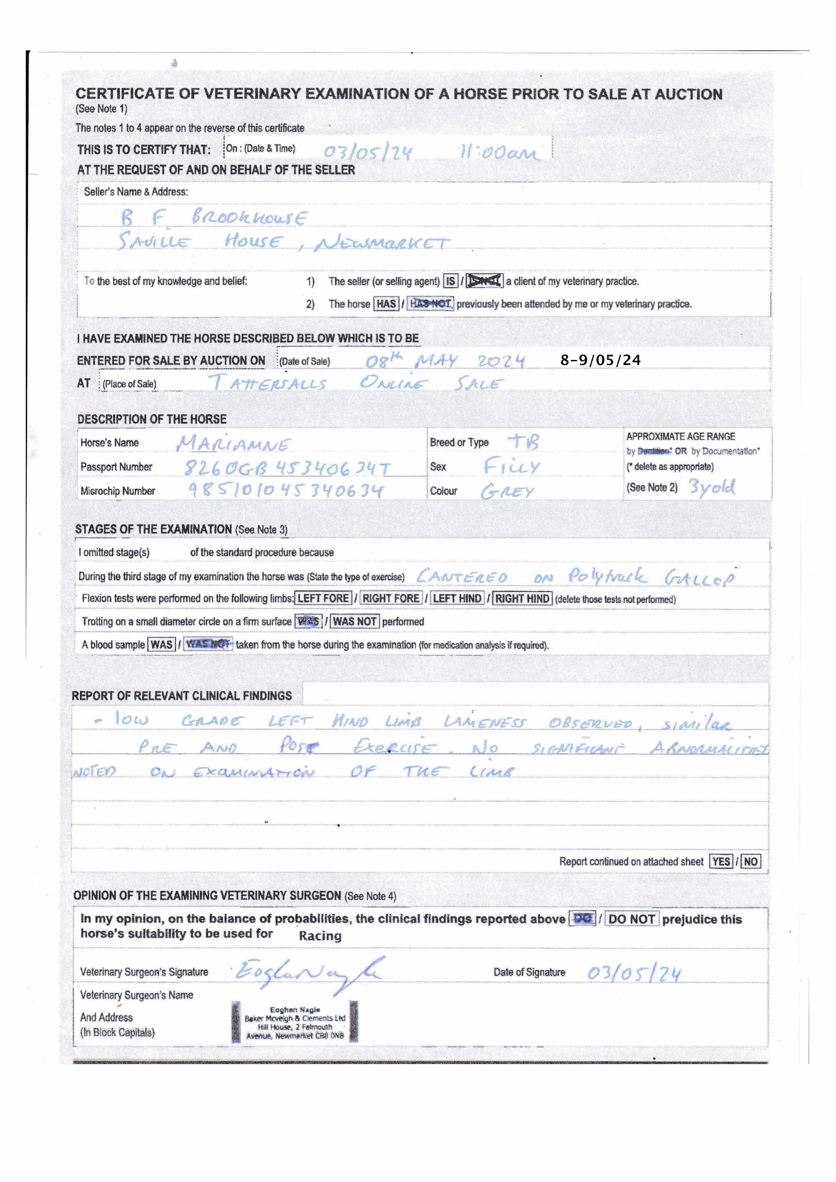 For time sensitive requests please call Tattersalls on +44(0)1638665931