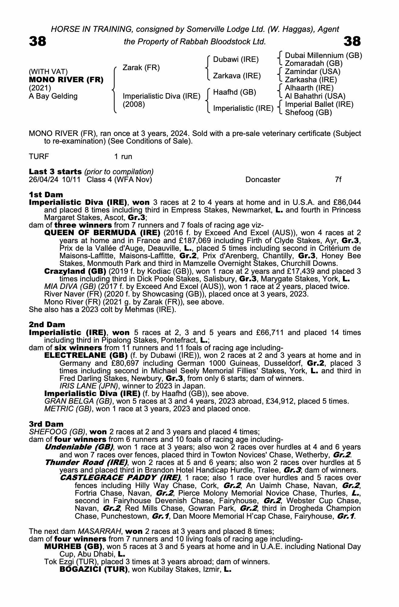 Consignor: Somerville Lodge Ltd. (W. Haggas), Agent