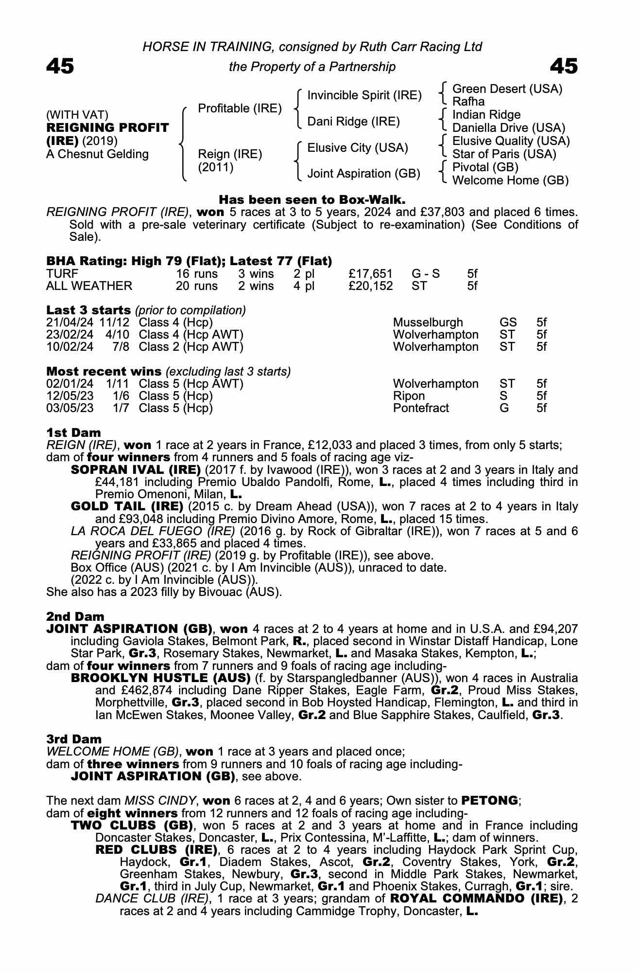 Vendor's Notes: 5 time winner over 5f. Acts on the AW and turf including soft ground.
