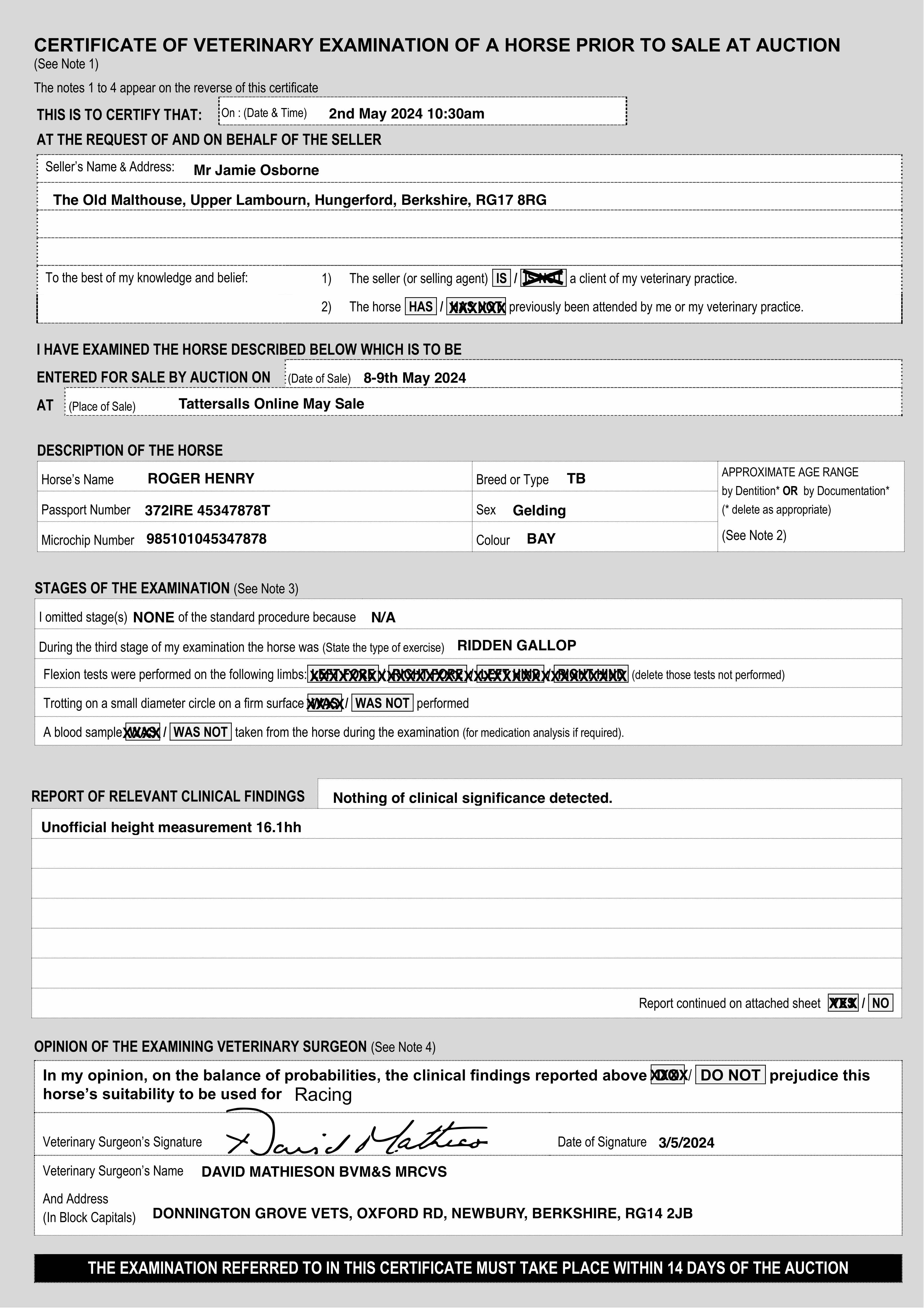 Vendor's Notes: Please contact Jamie Osborne 07860 533422