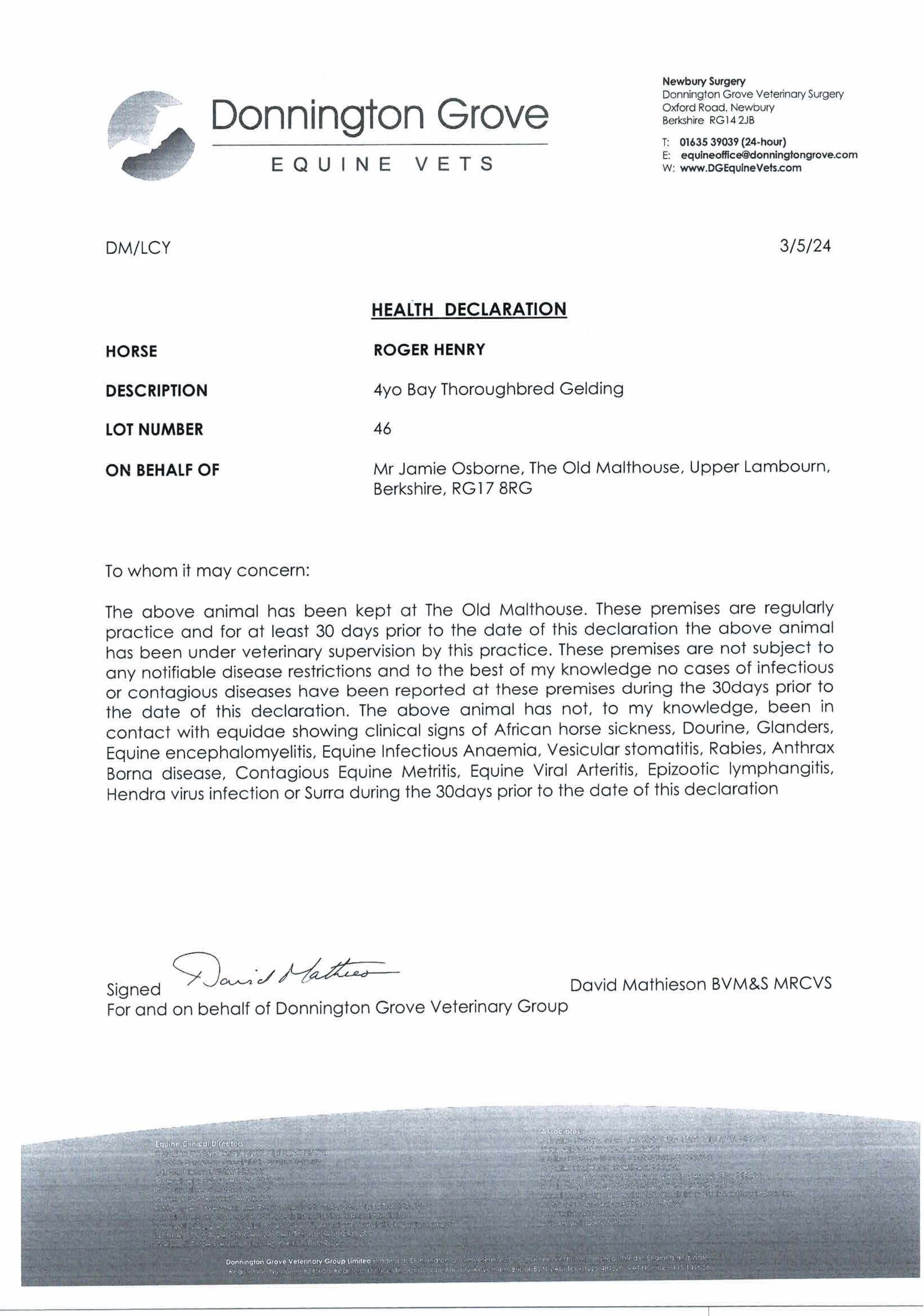 Consignor: The Old Malthouse Stables (J. Osborne)