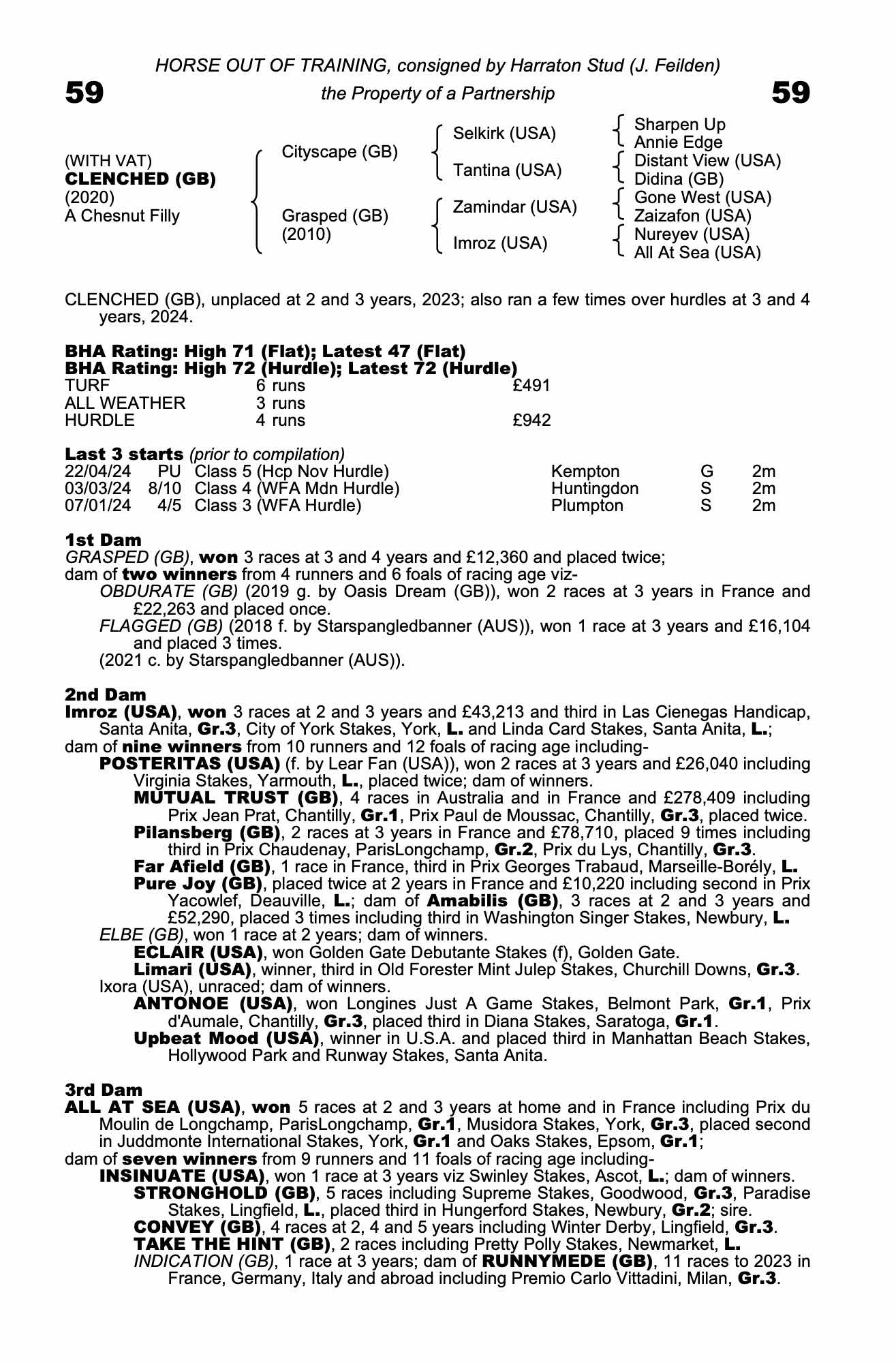 Vendor's Notes: Clenched is fit and sound and can race on, alternatively she will be a nice eventer or team chaser. Sold out of training to save on sale costs. Good ride, great jumper, loves turnout, no vices but she is grumpy in the stable.