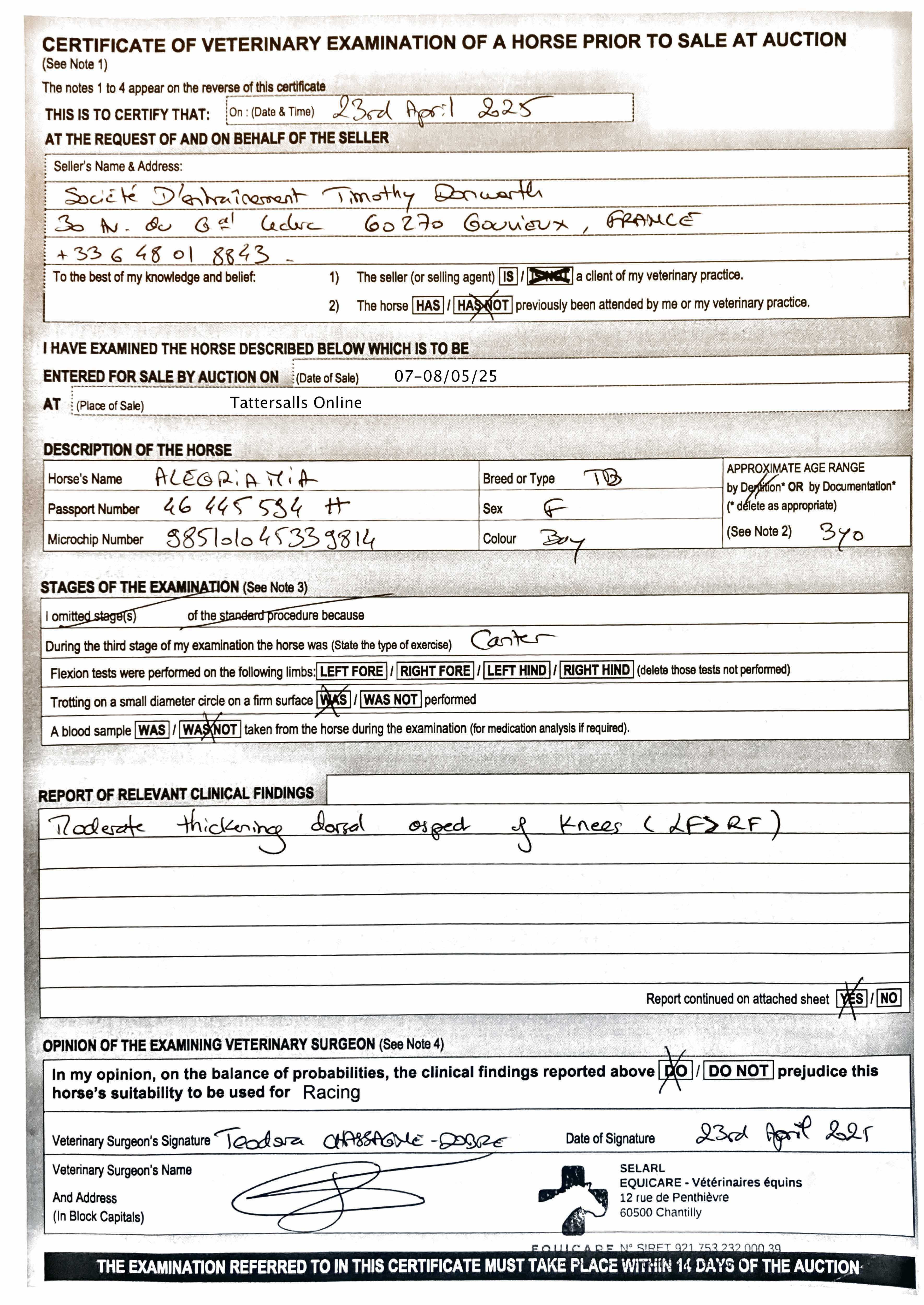 For time sensitive requests please call Tattersalls on +44(0)1638665931