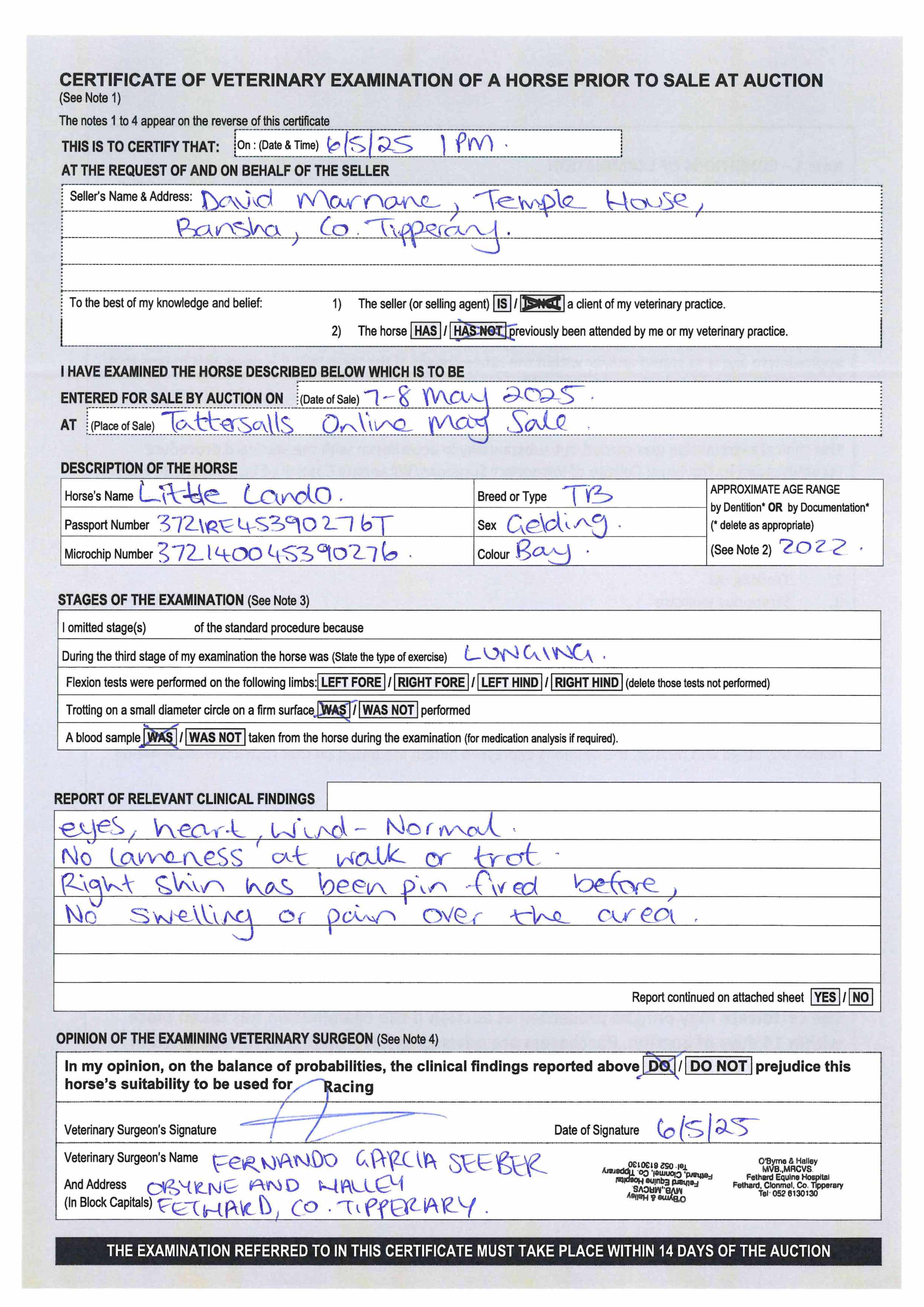 For time sensitive requests please call Tattersalls on +44(0)1638665931
