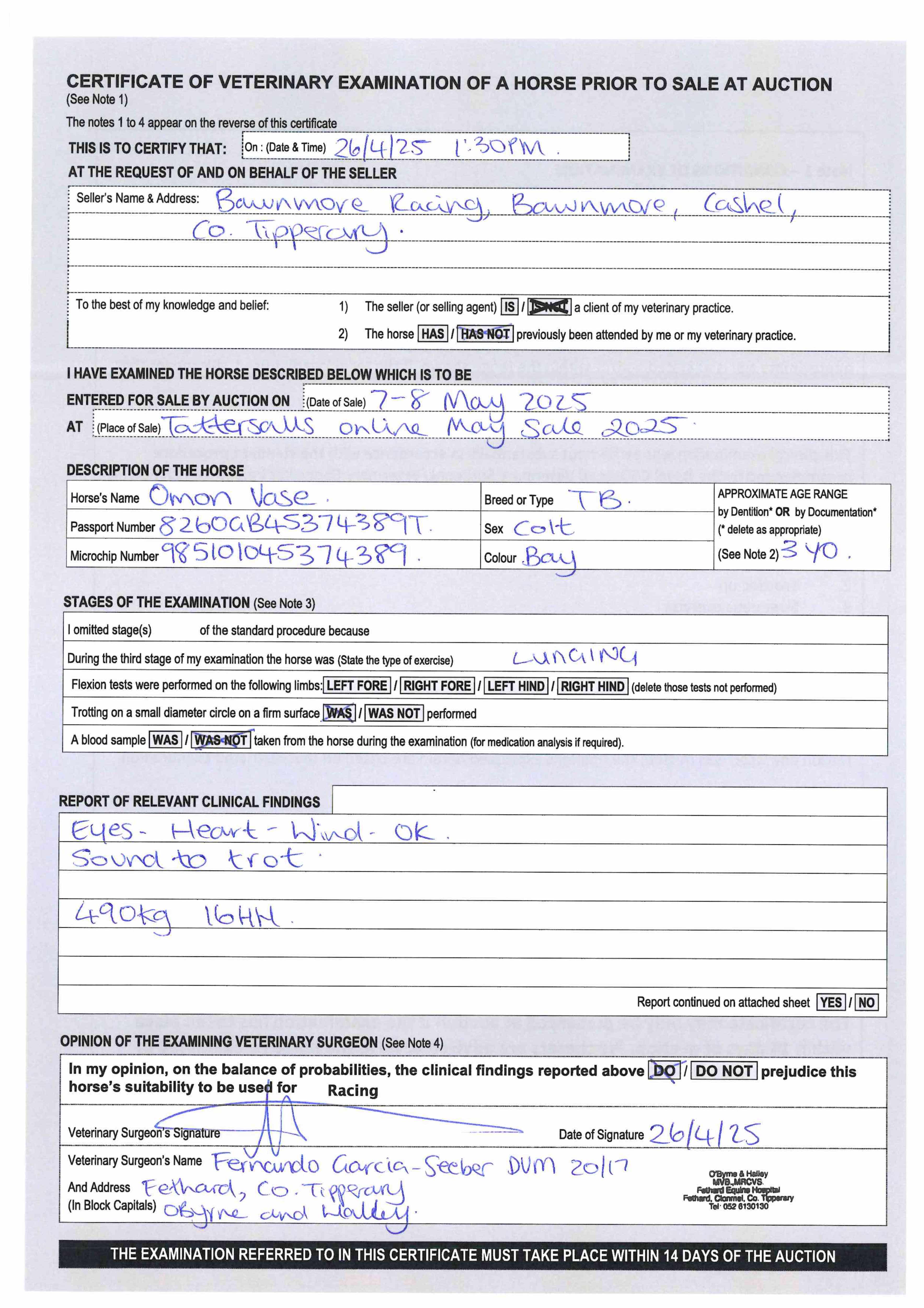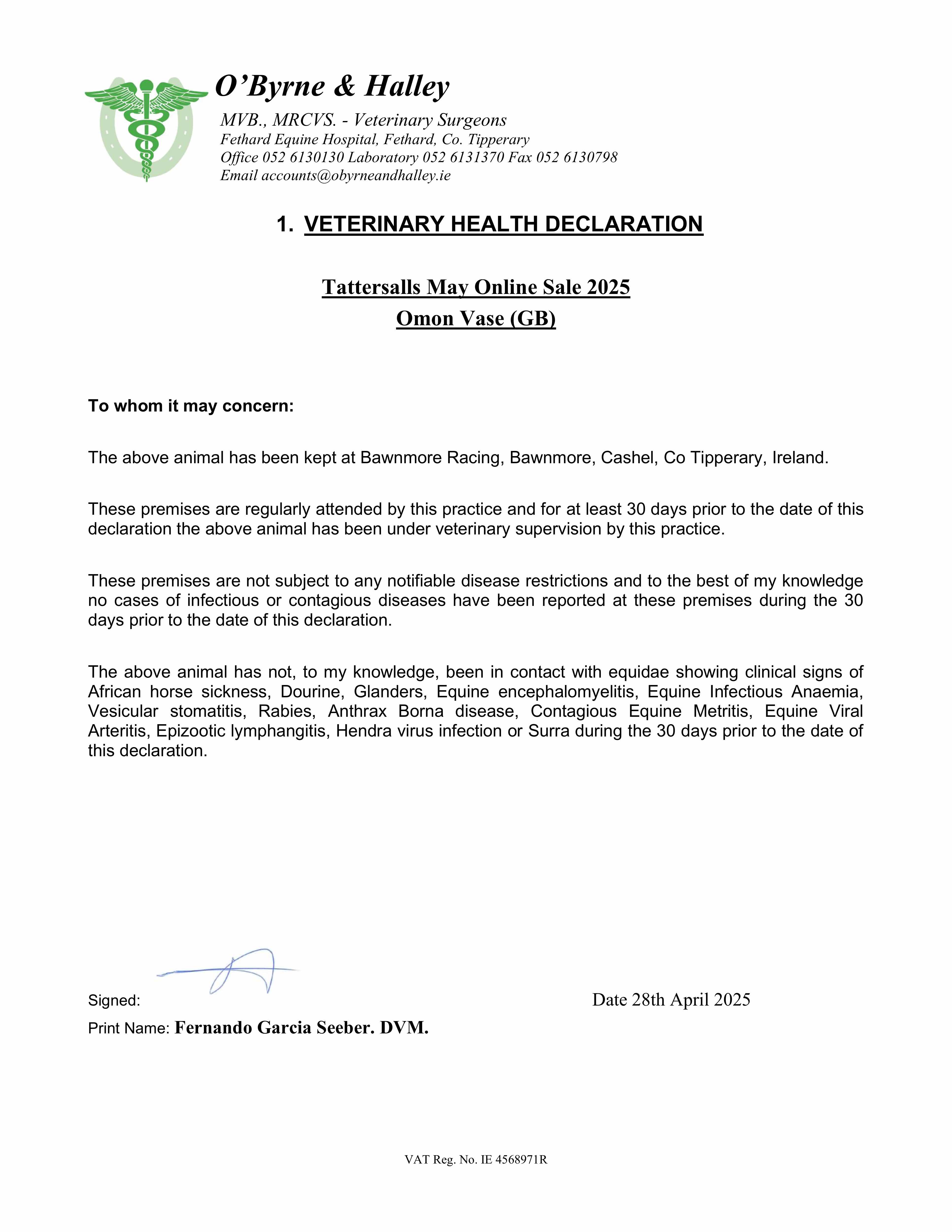 Contact: Donnacha O'Brien ✆ 0863837811 ✉ rhickey@bawnmoreracing.ie