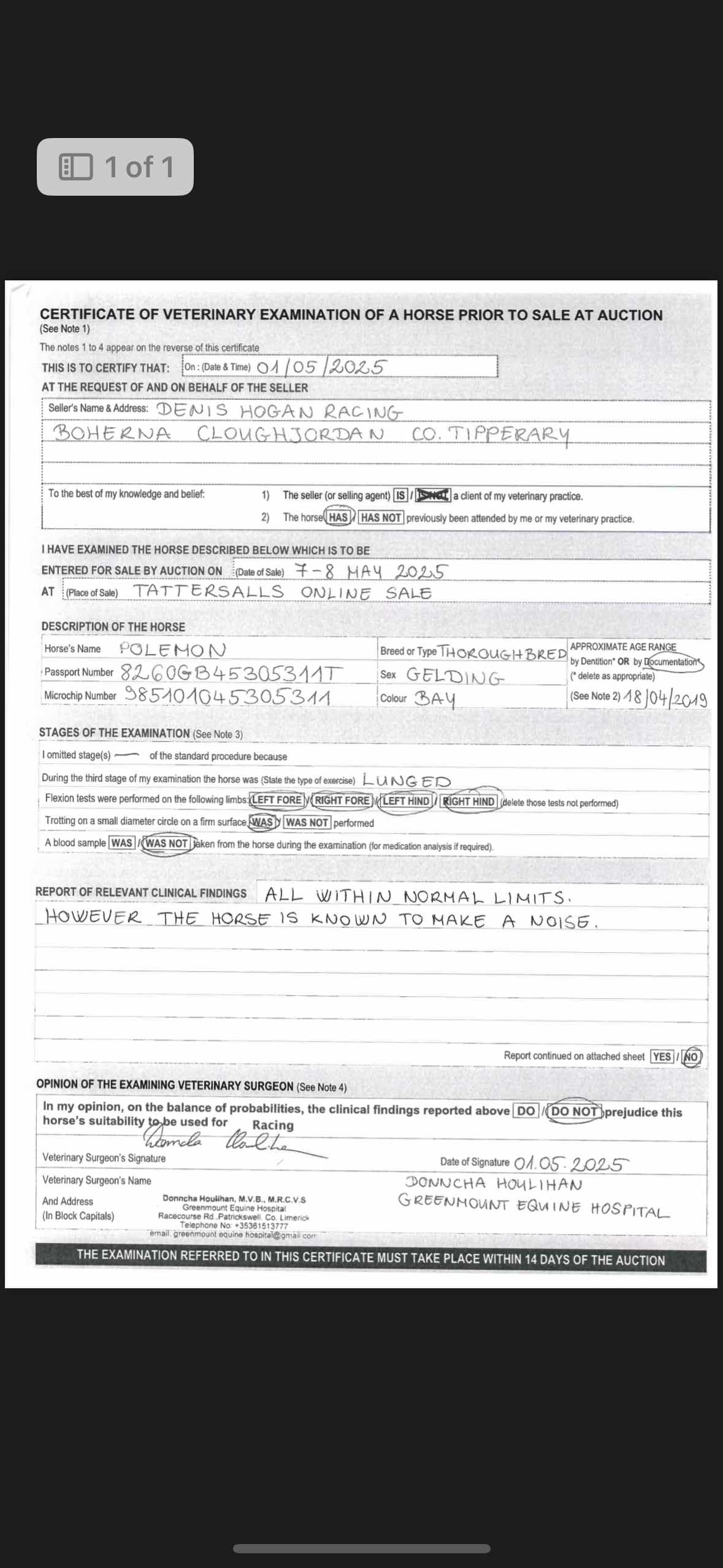 For time sensitive requests please call Tattersalls on +44(0)1638665931