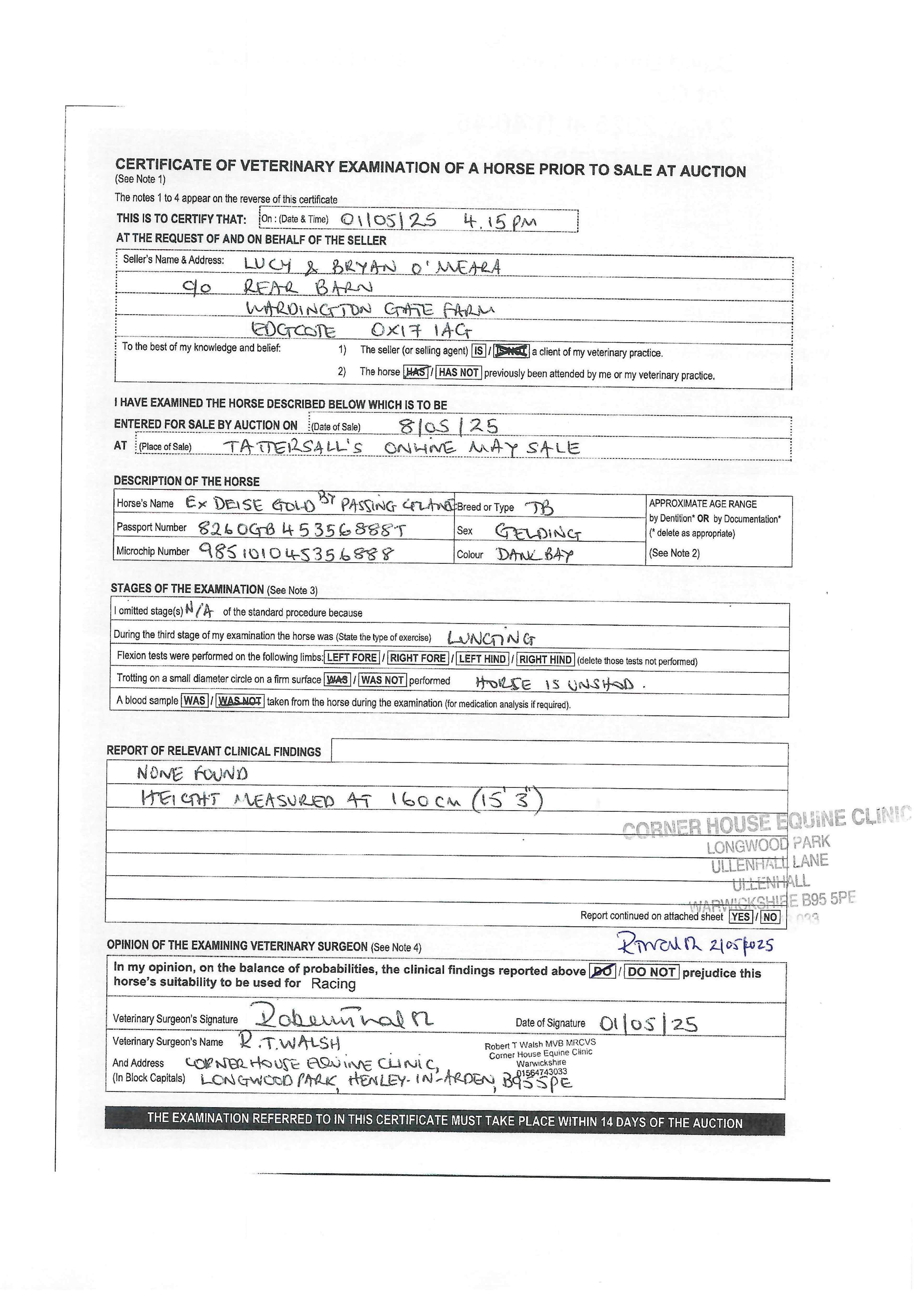 For time sensitive requests please call Tattersalls on +44(0)1638665931