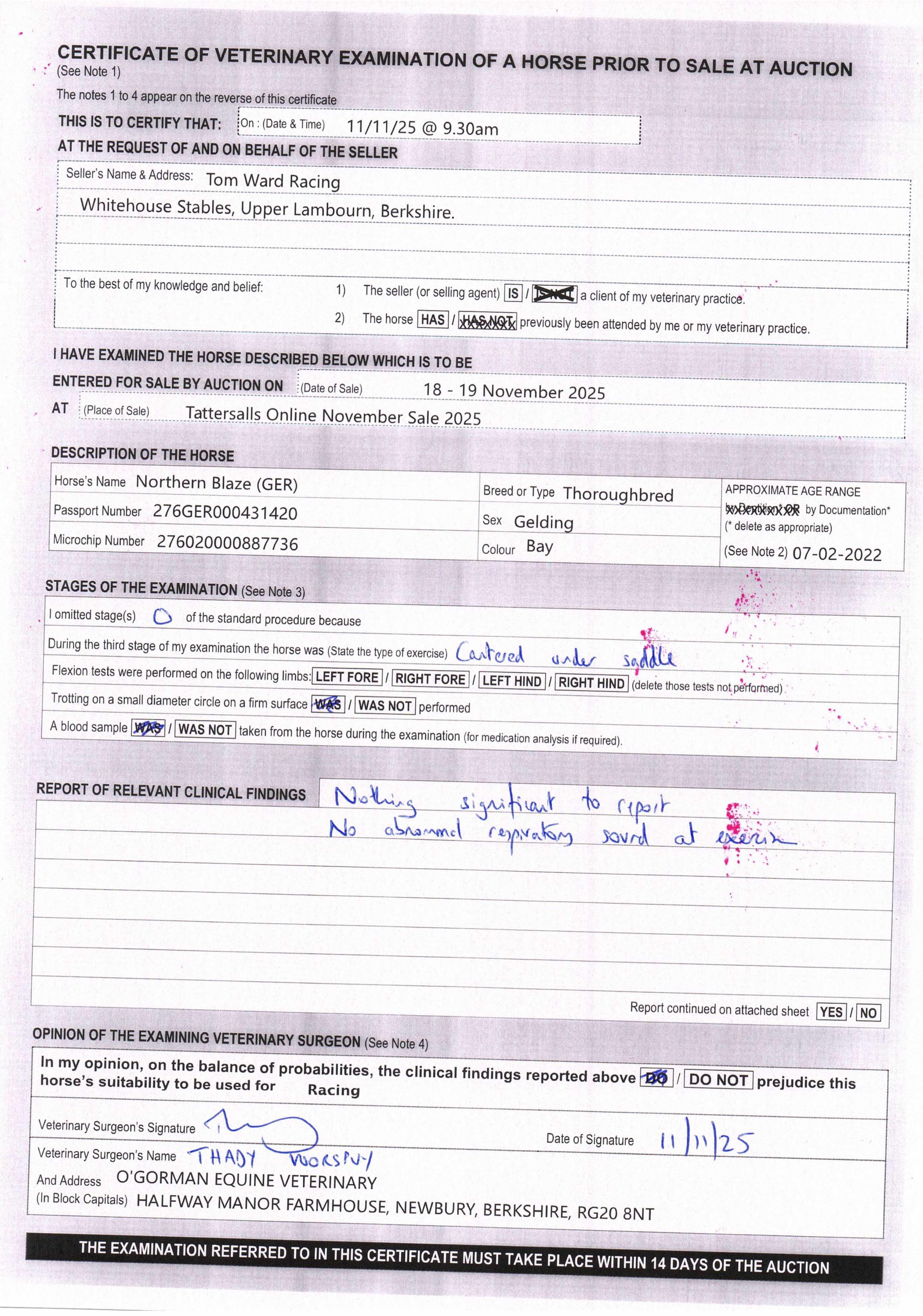 For time sensitive requests please call Tattersalls on +44(0)1638665931