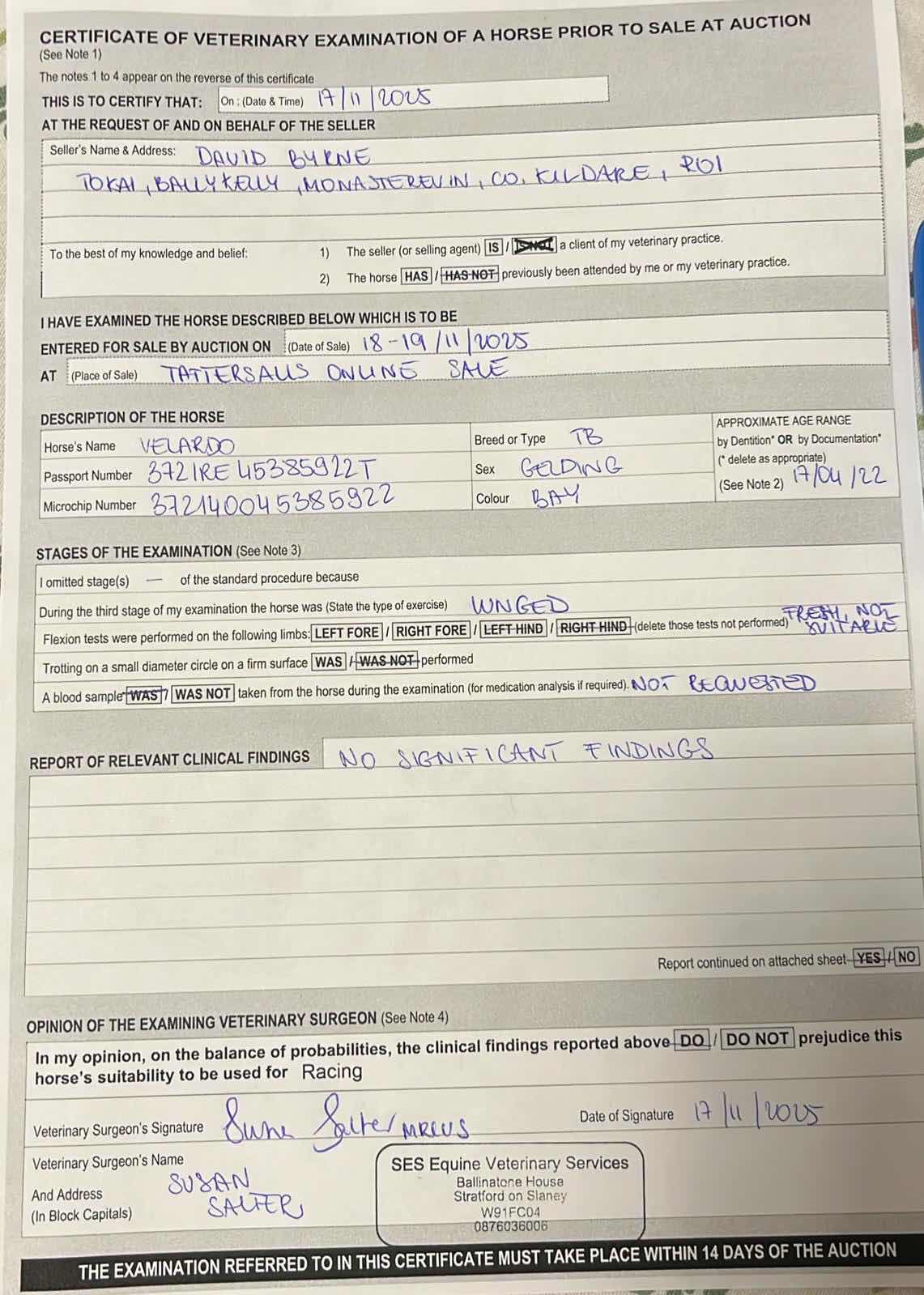 Vendor's Notes: Velardo is a clean winded and sound, He would make a lovely dual purpose horse. 16:3