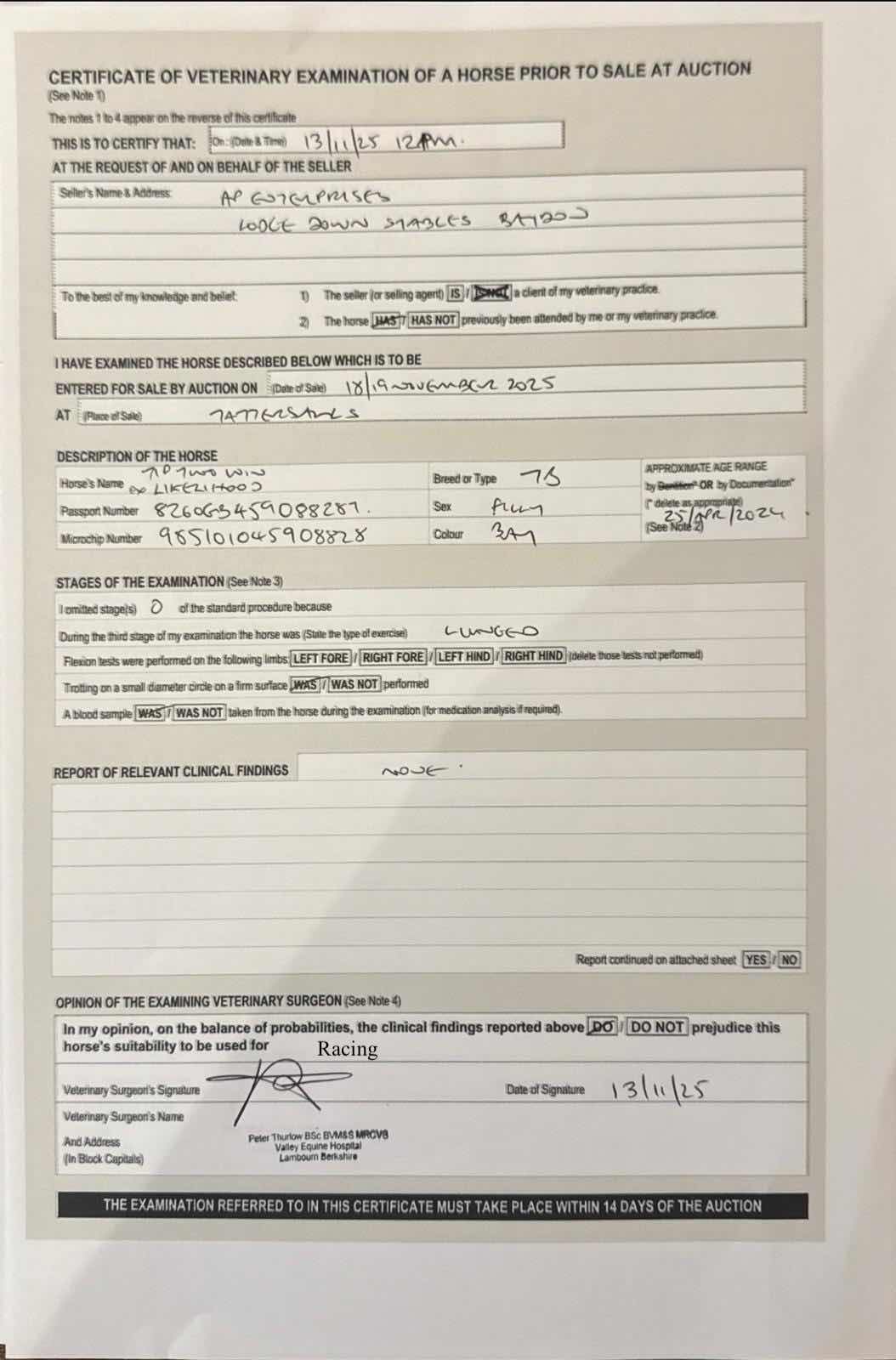 For time sensitive requests please call Tattersalls on +44(0)1638665931