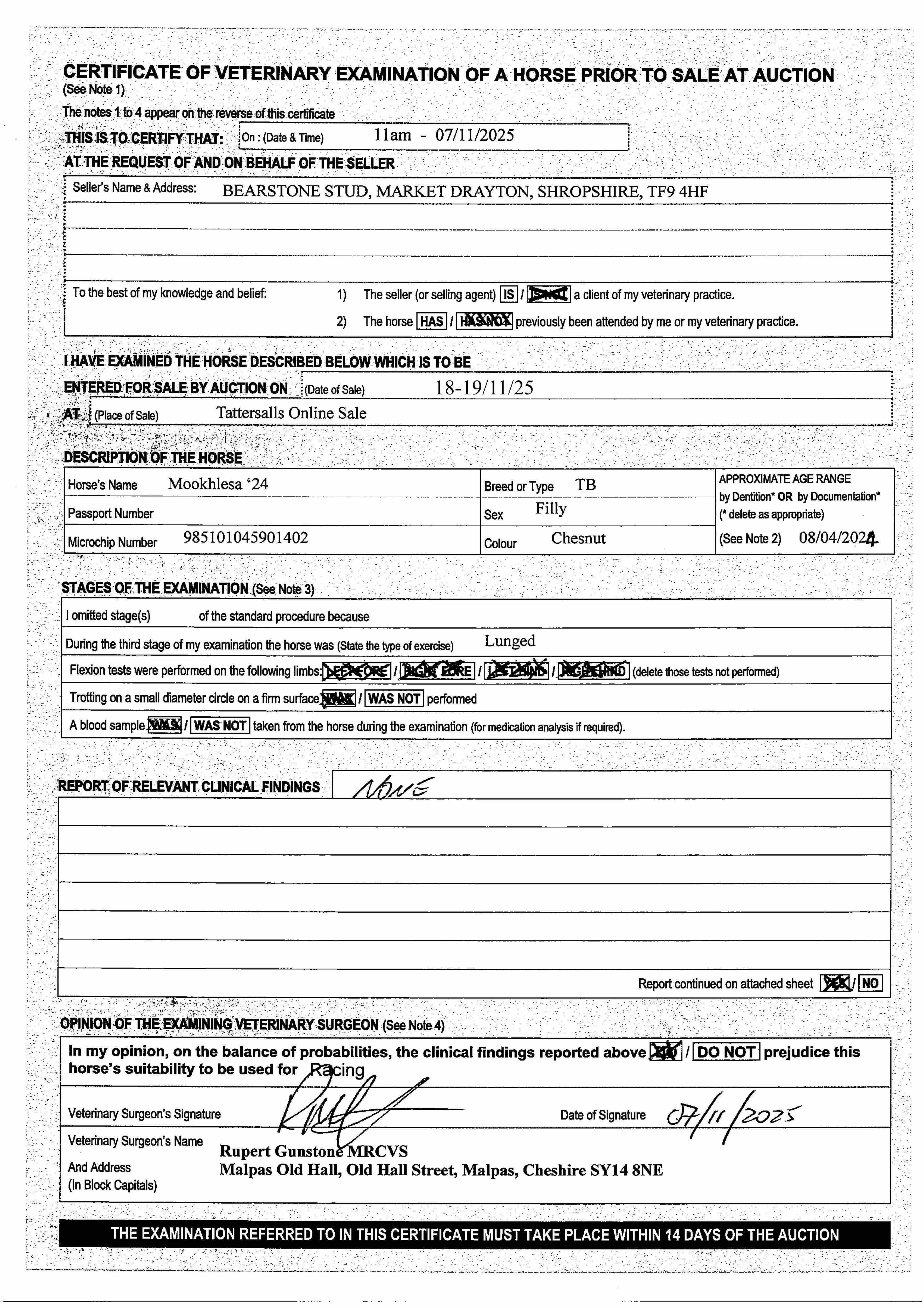 For time sensitive requests please call Tattersalls on +44(0)1638665931