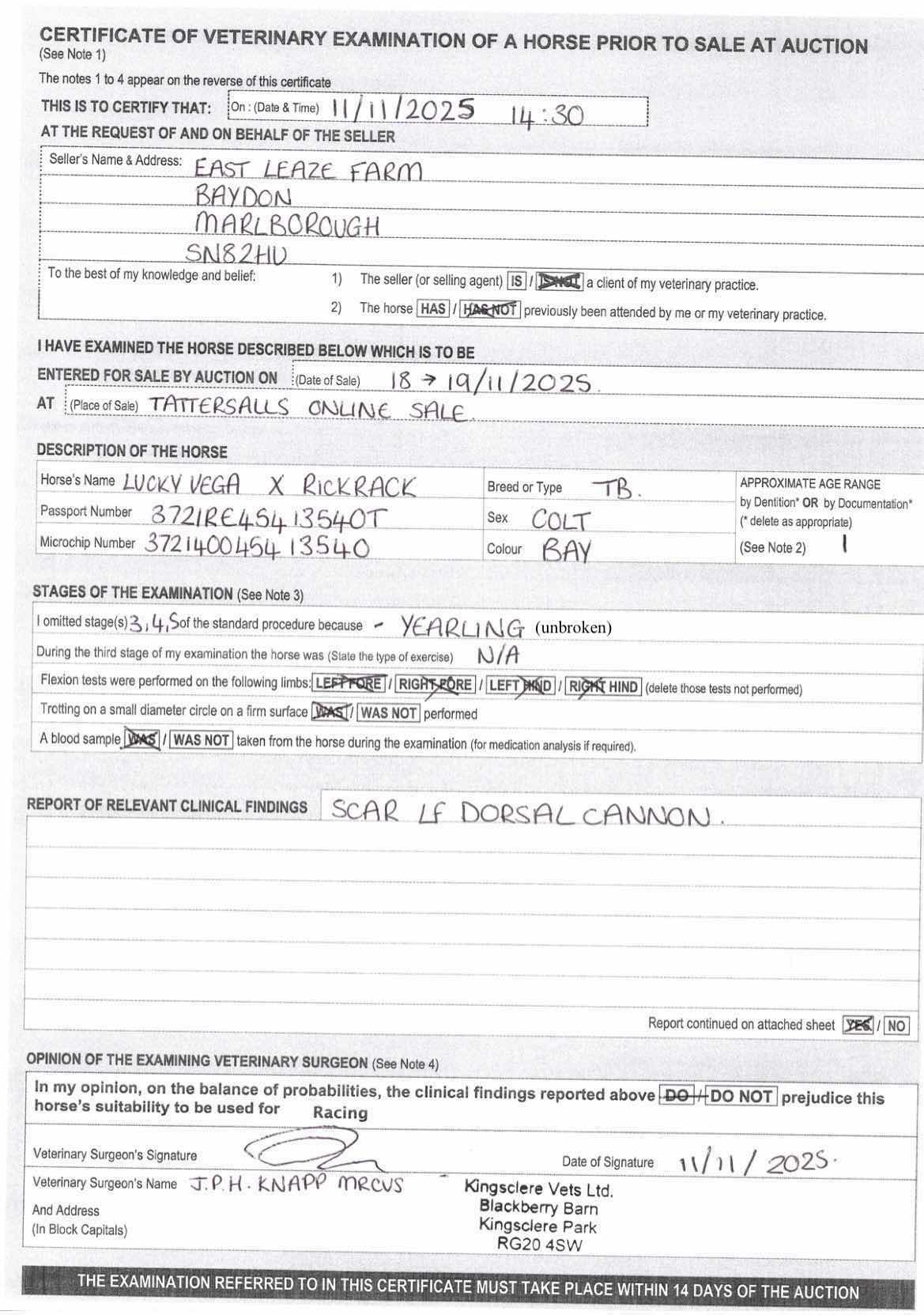 For time sensitive requests please call Tattersalls on +44(0)1638665931