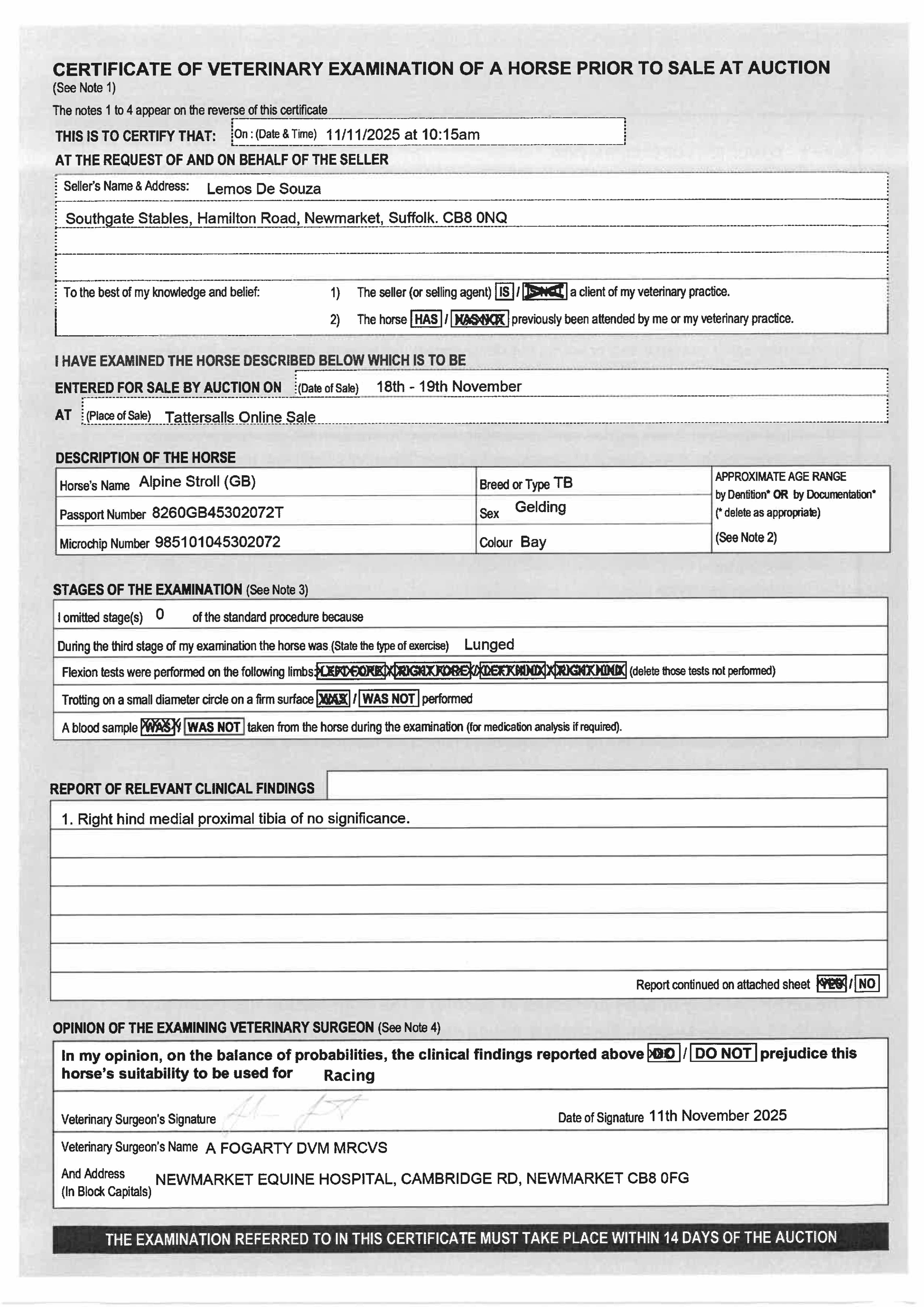 For time sensitive requests please call Tattersalls on +44(0)1638665931