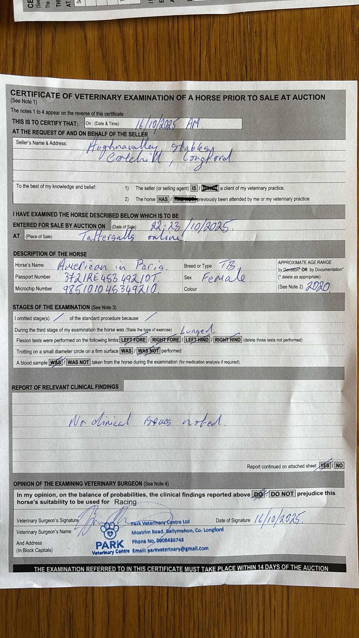 For time sensitive requests please call Tattersalls on +44(0)1638665931