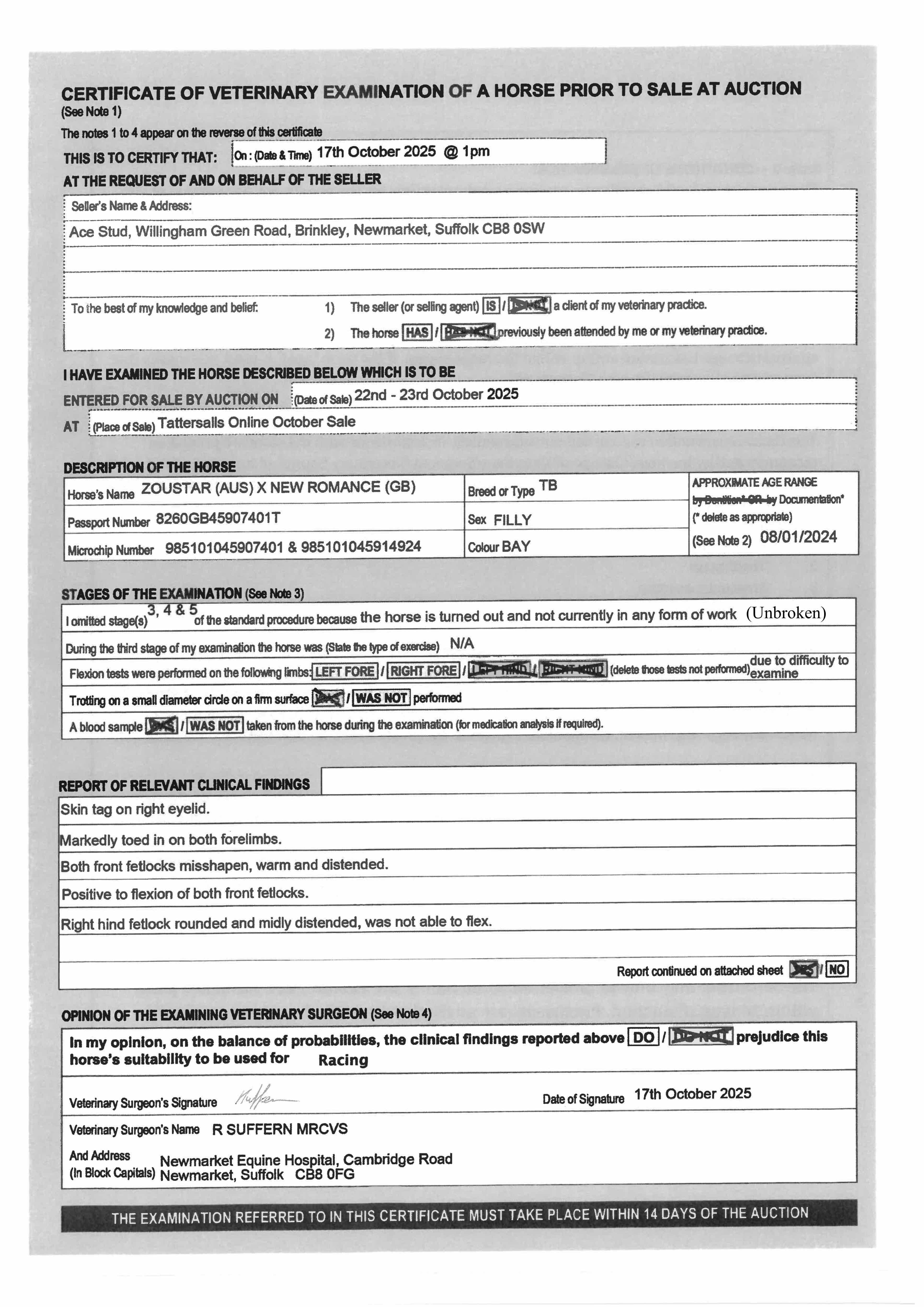 For time sensitive requests please call Tattersalls on +44(0)1638665931