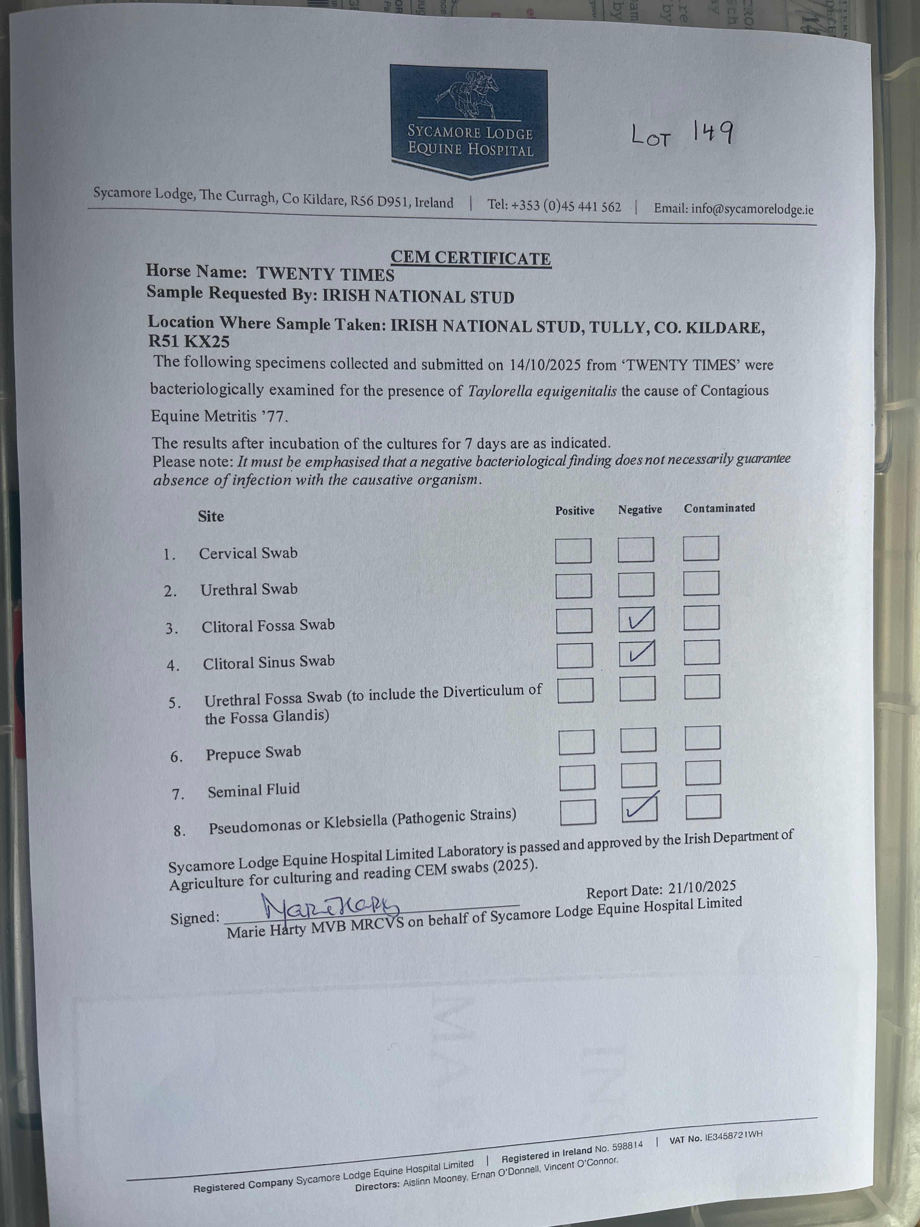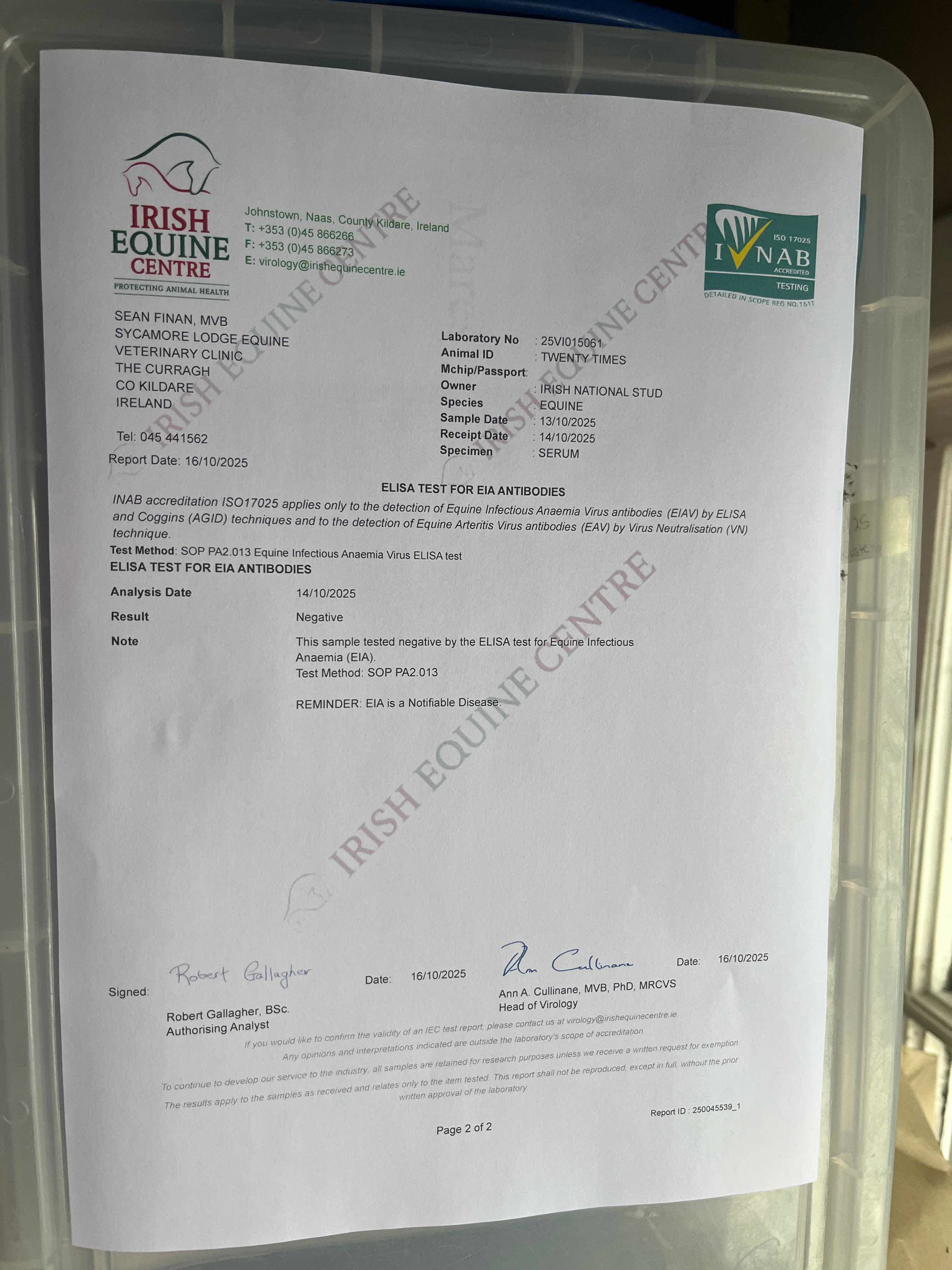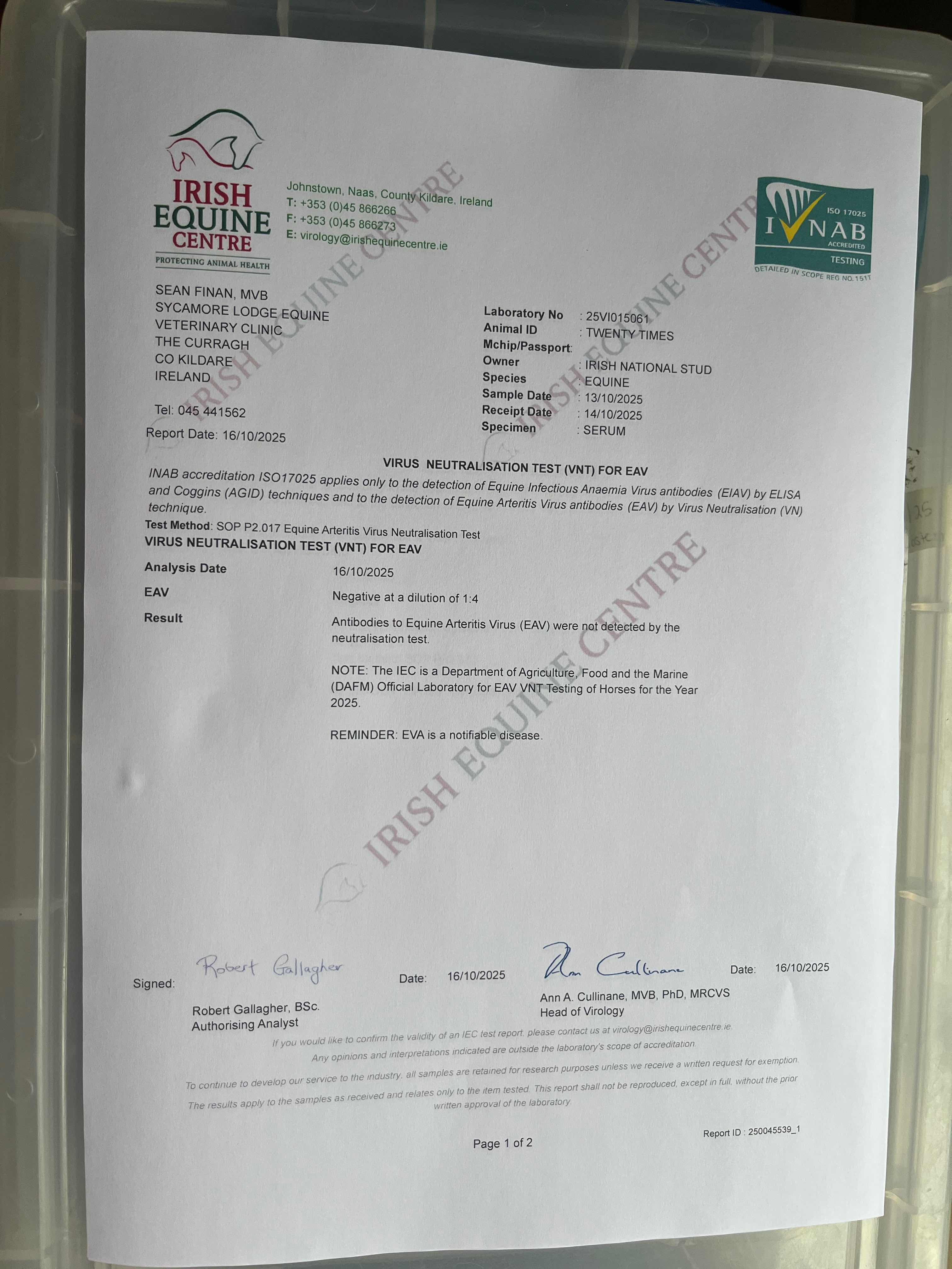 Contact: Conor Hyland ✆ 00353 851299236 ✉ chyland@irishnationalstud.ie