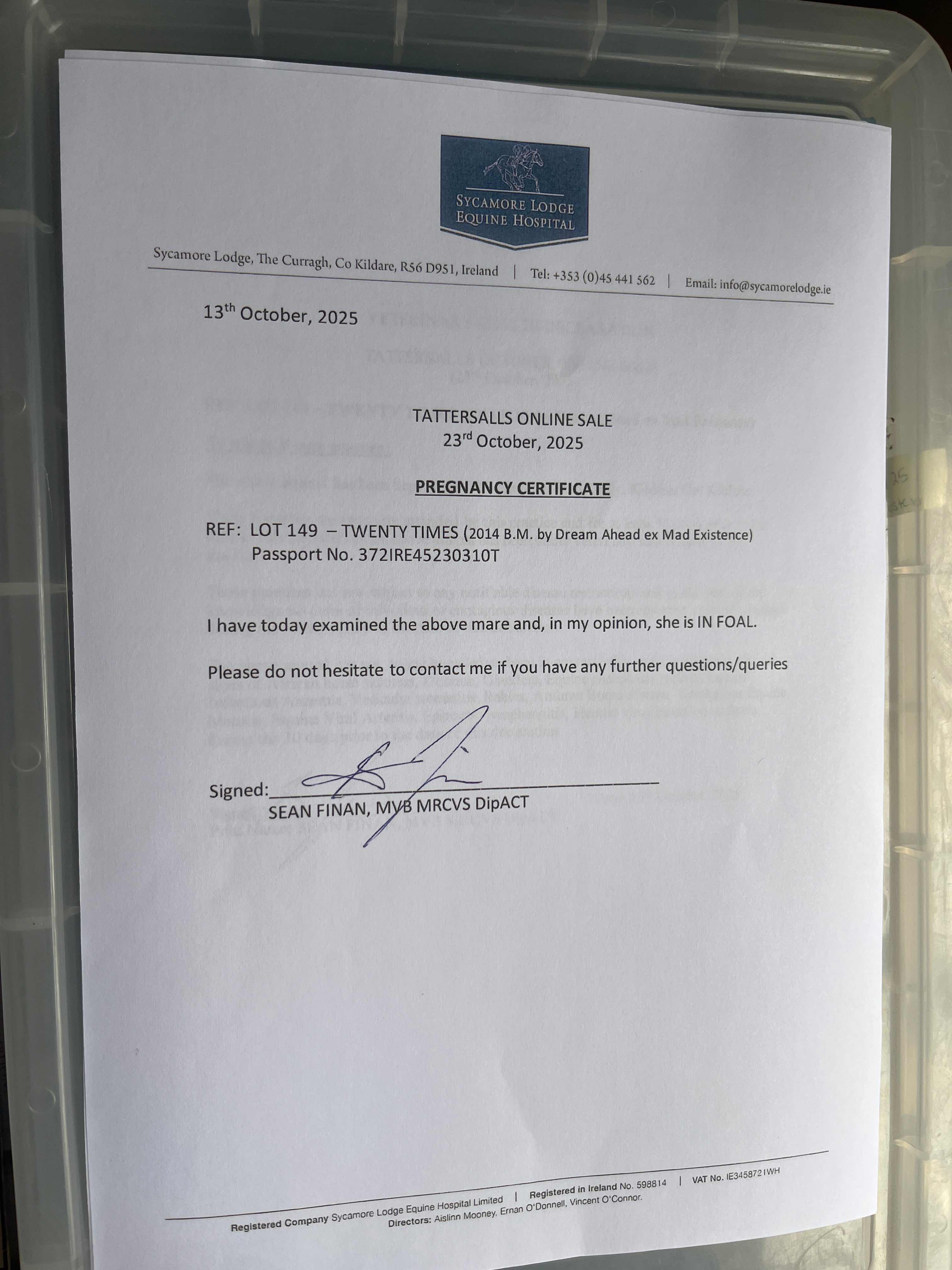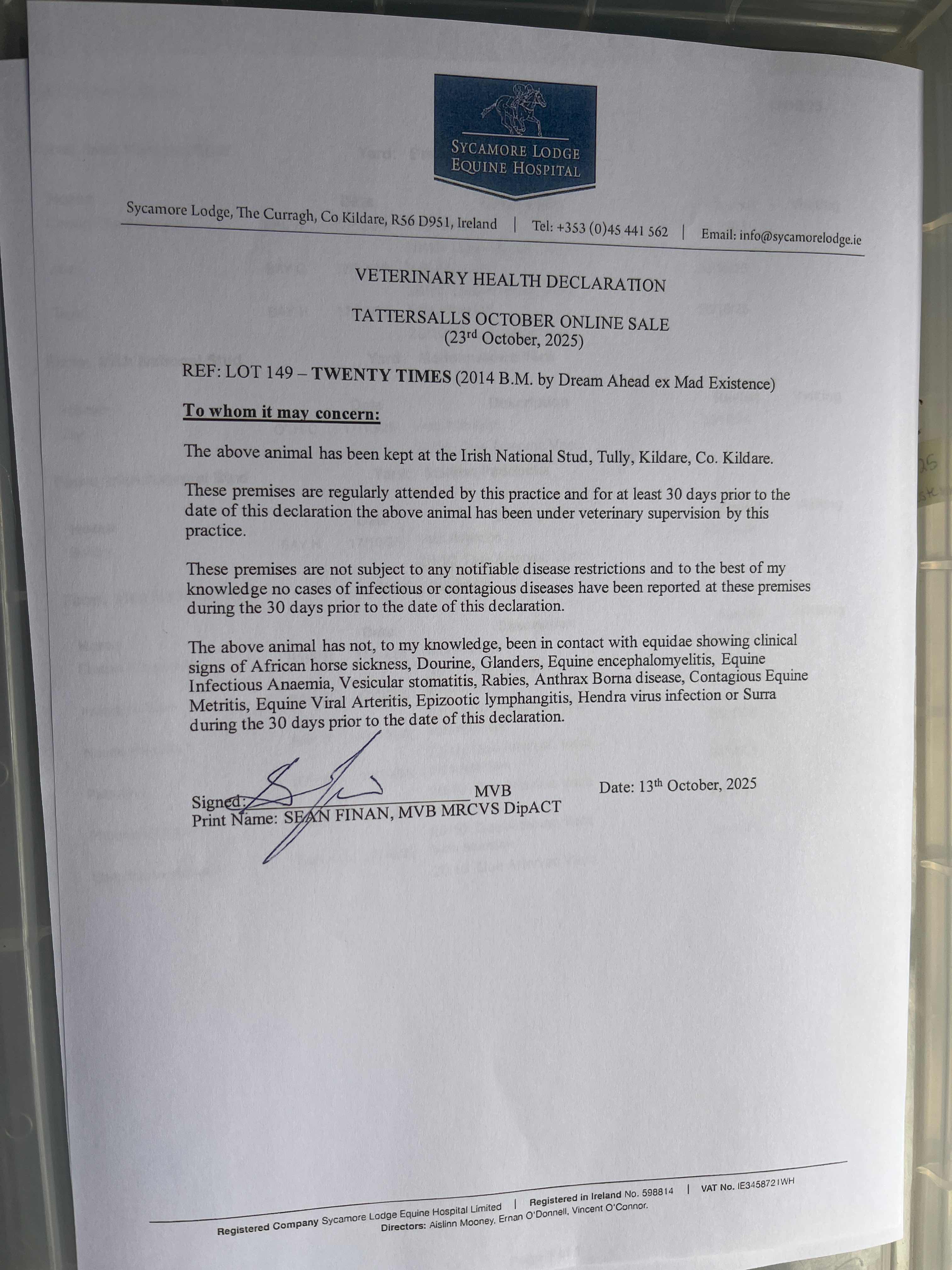 For time sensitive requests please call Tattersalls on +44(0)1638665931