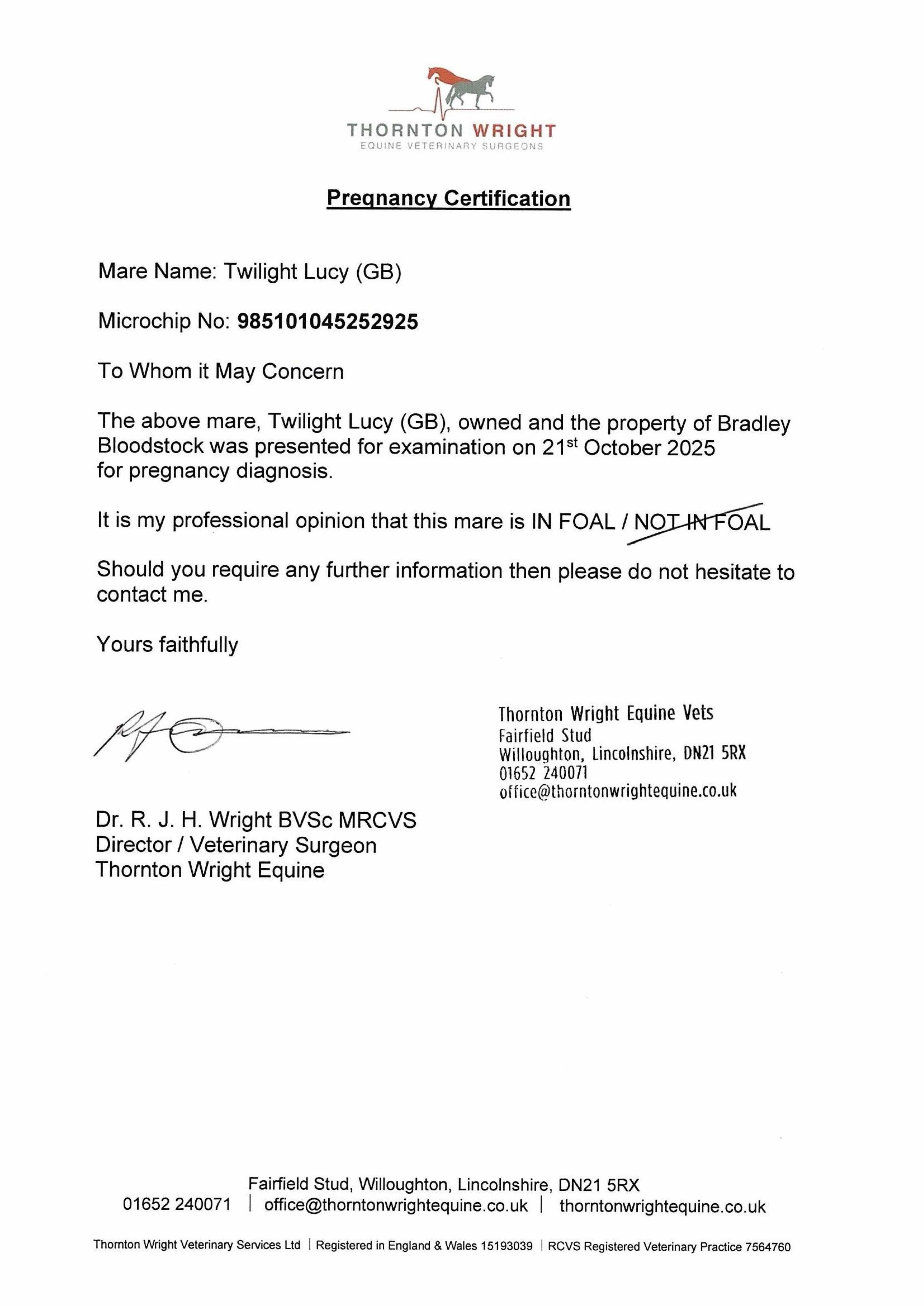 Electronic covering cert at Weatherbys