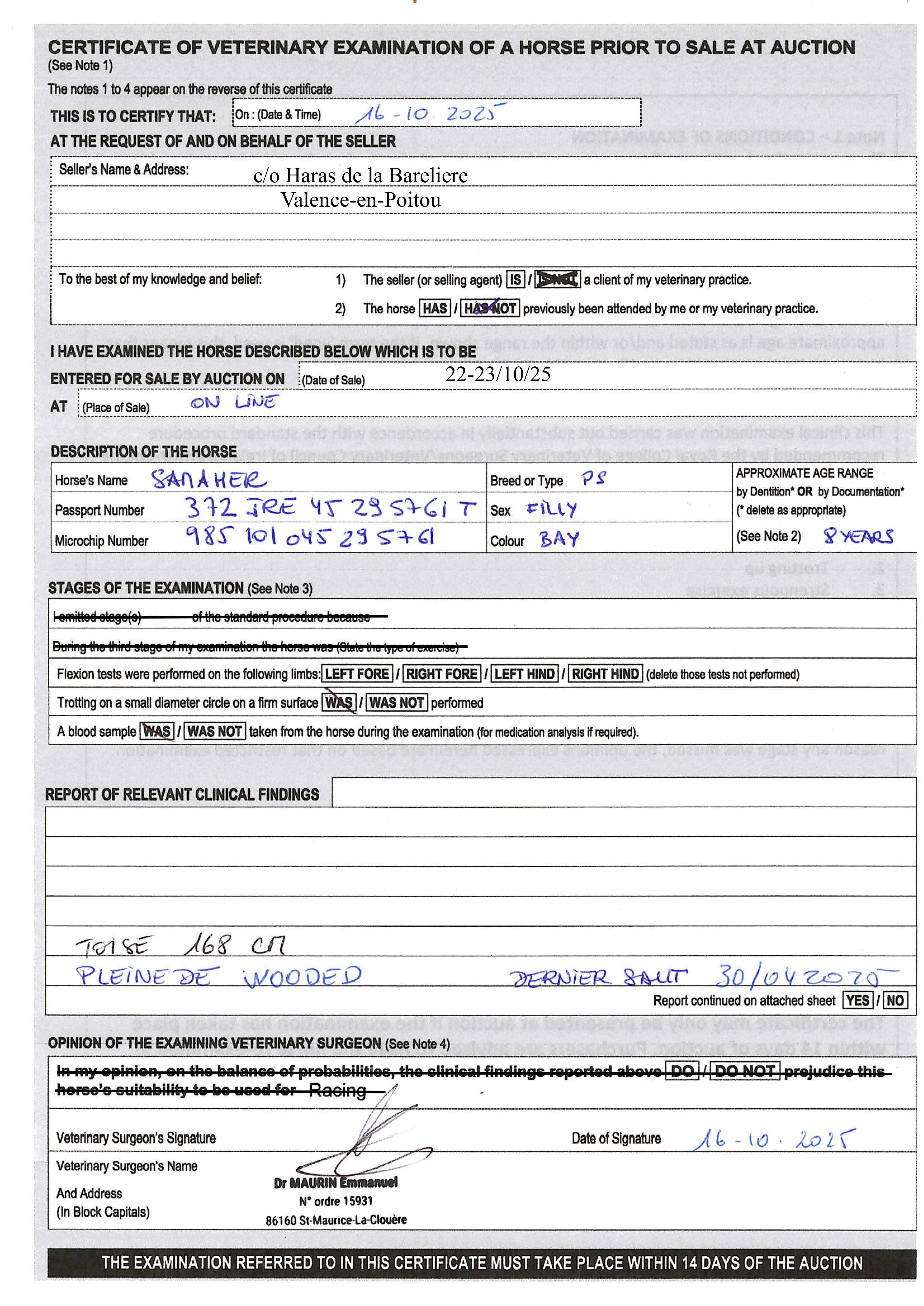 🇫🇷 Location: Haras de la Bareliere , Lieu dit La Barelière, 86700 Valence-en-Poitou, Valence-en-poitou, 86700, France