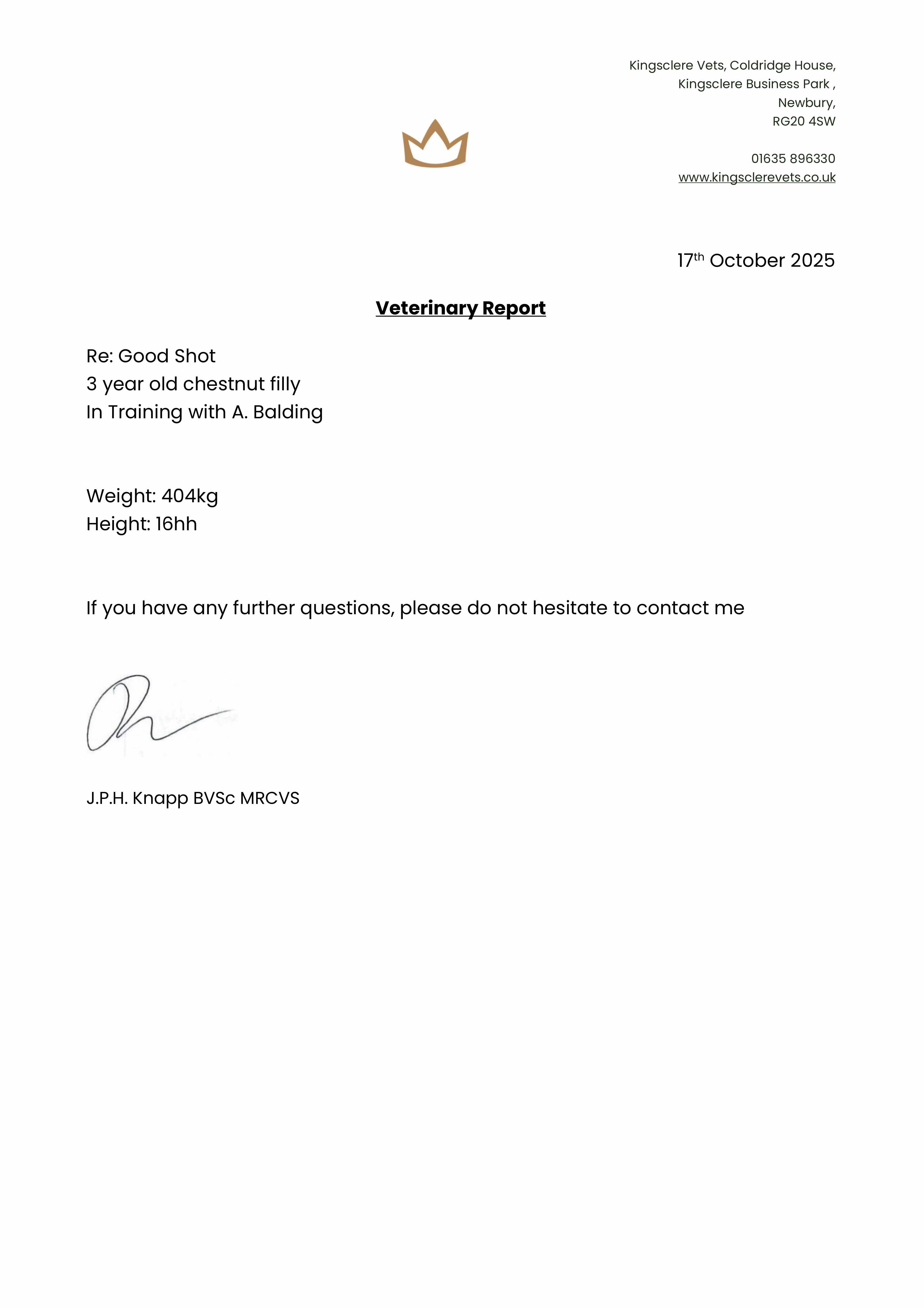 Contact: Andrew Balding ✆ 01635298210 ✉ office@kingsclere.com