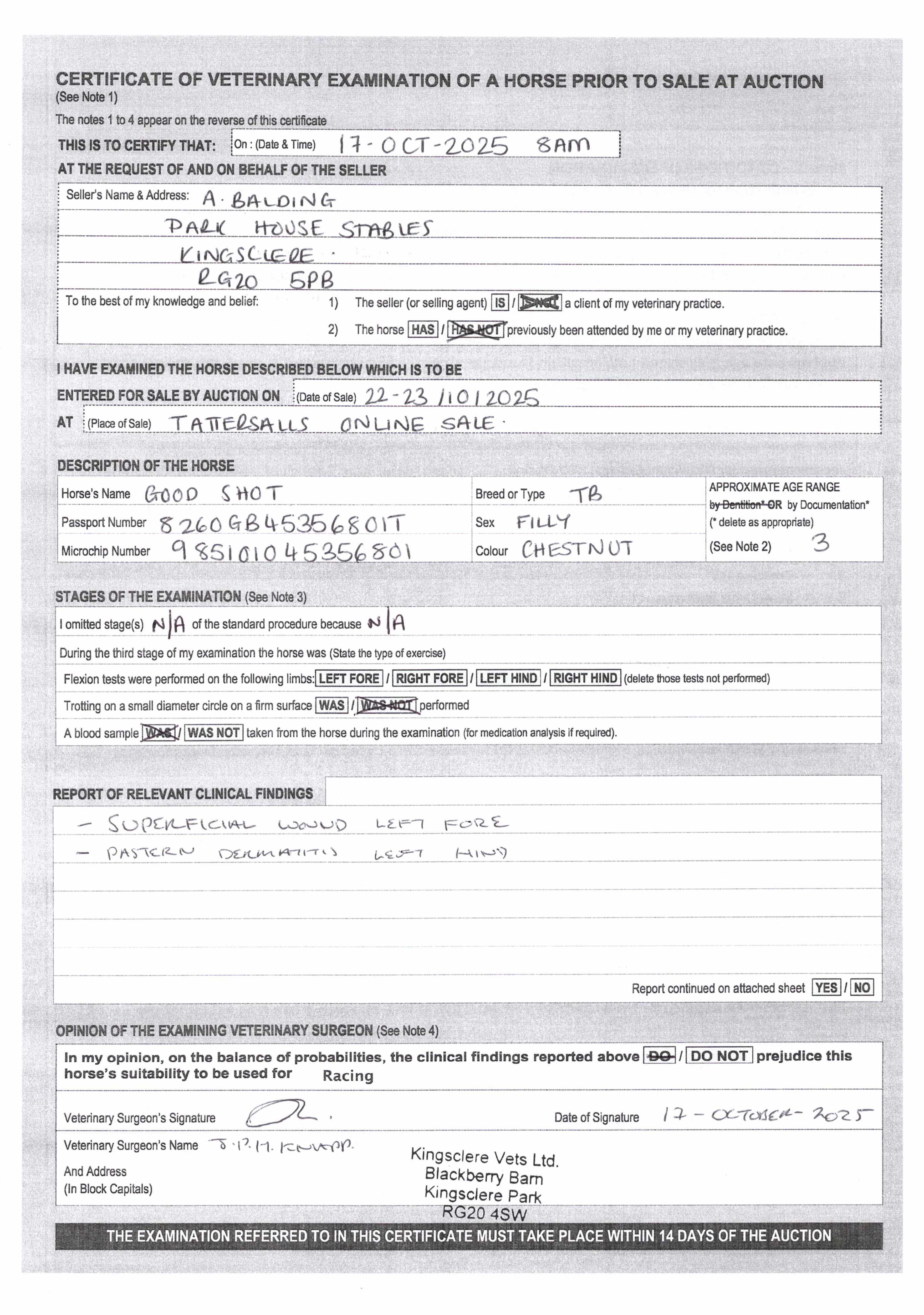 For time sensitive requests please call Tattersalls on +44(0)1638665931