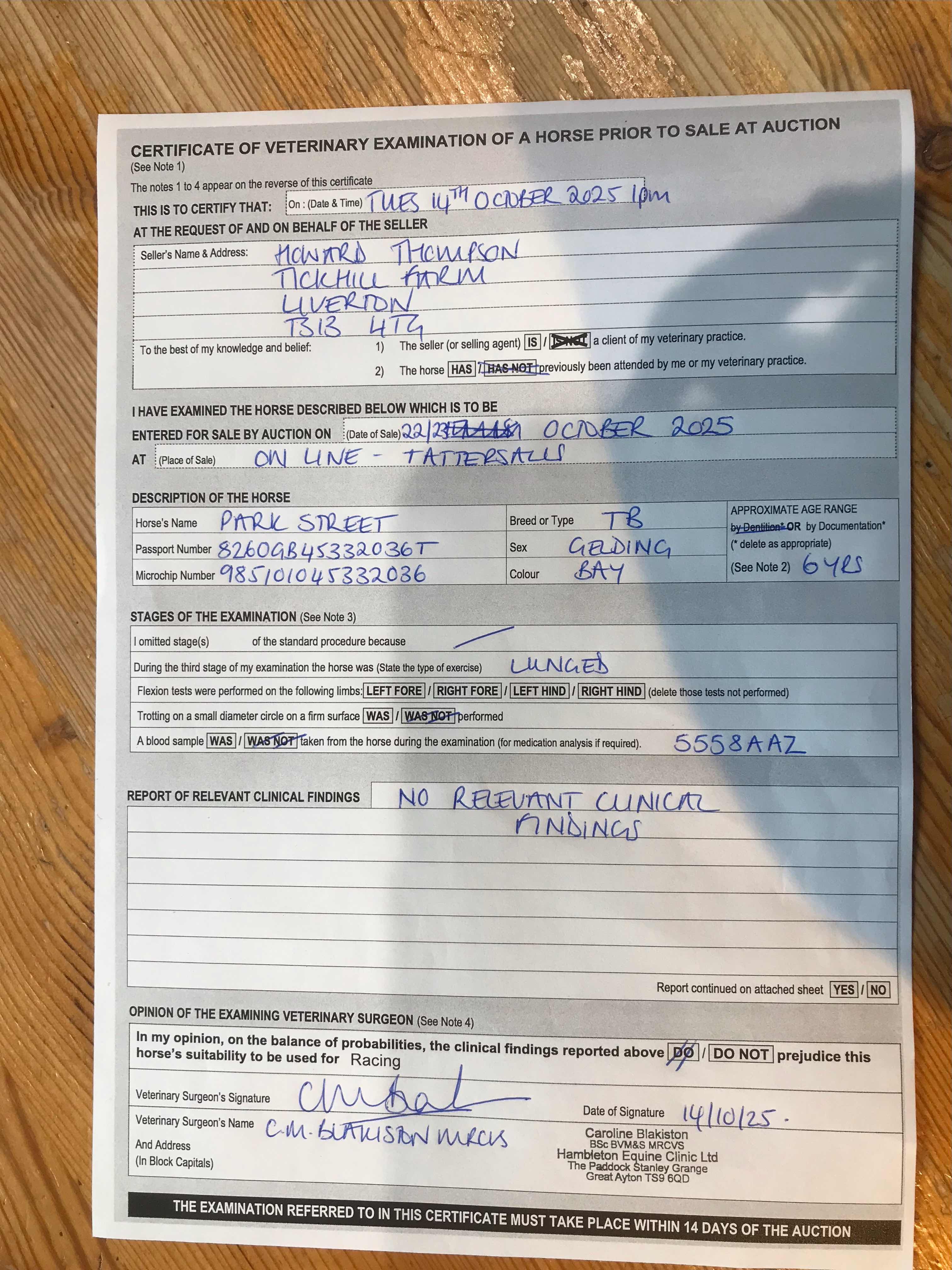 For time sensitive requests please call Tattersalls on +44(0)1638665931