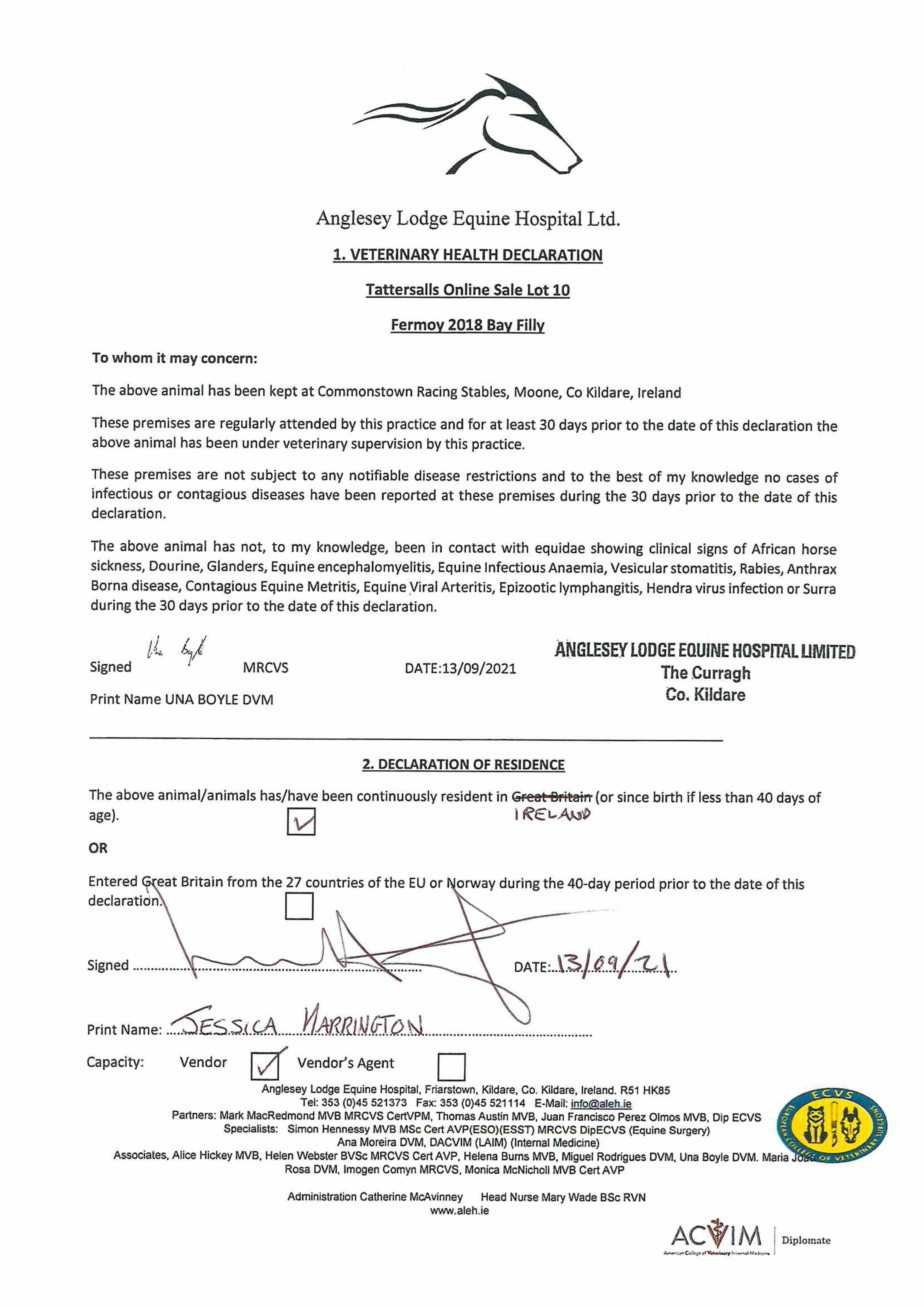 Consignor: Commonstown Stables, Ireland (Mrs J. Harrington)