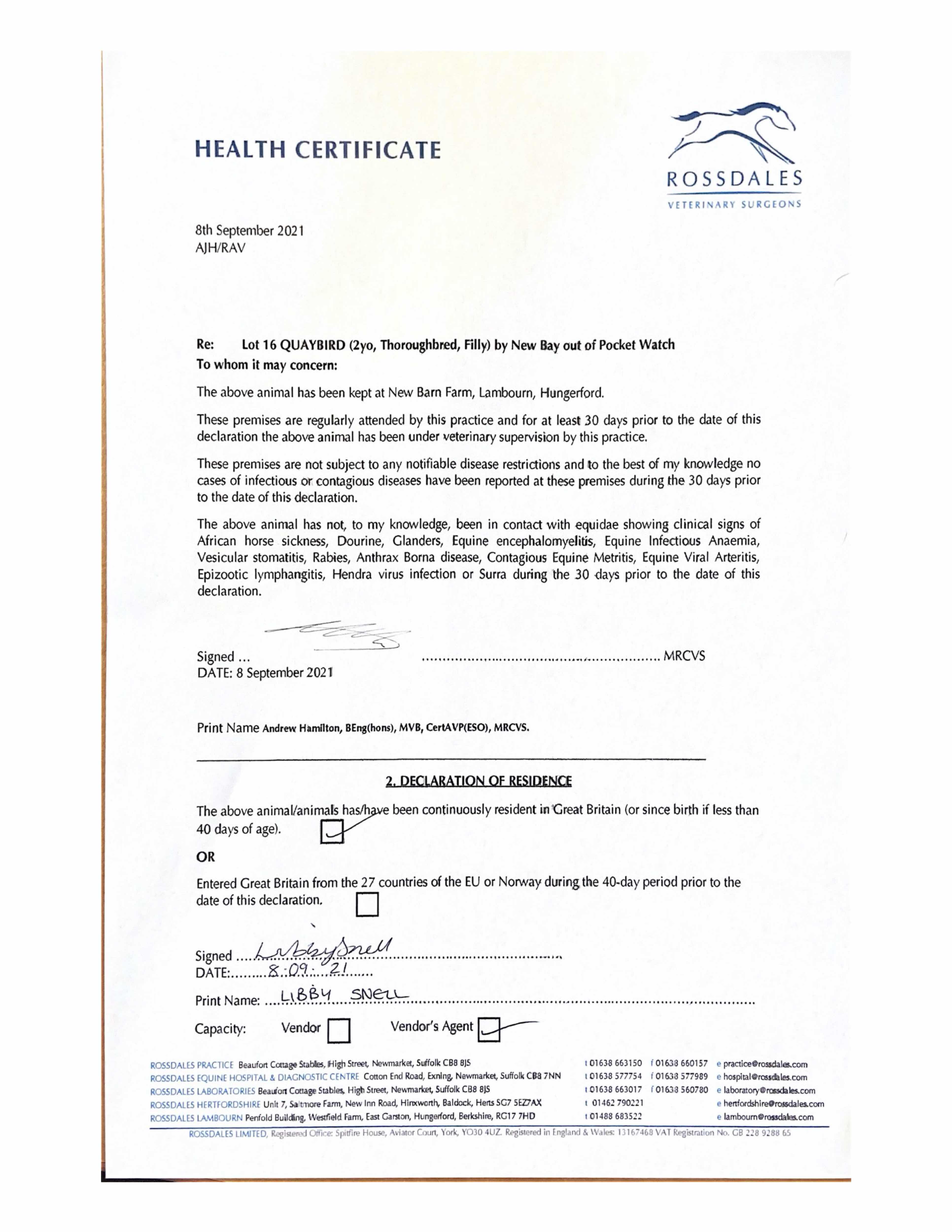 Vendor's Notes: Immature filly who is sound and clean winded.