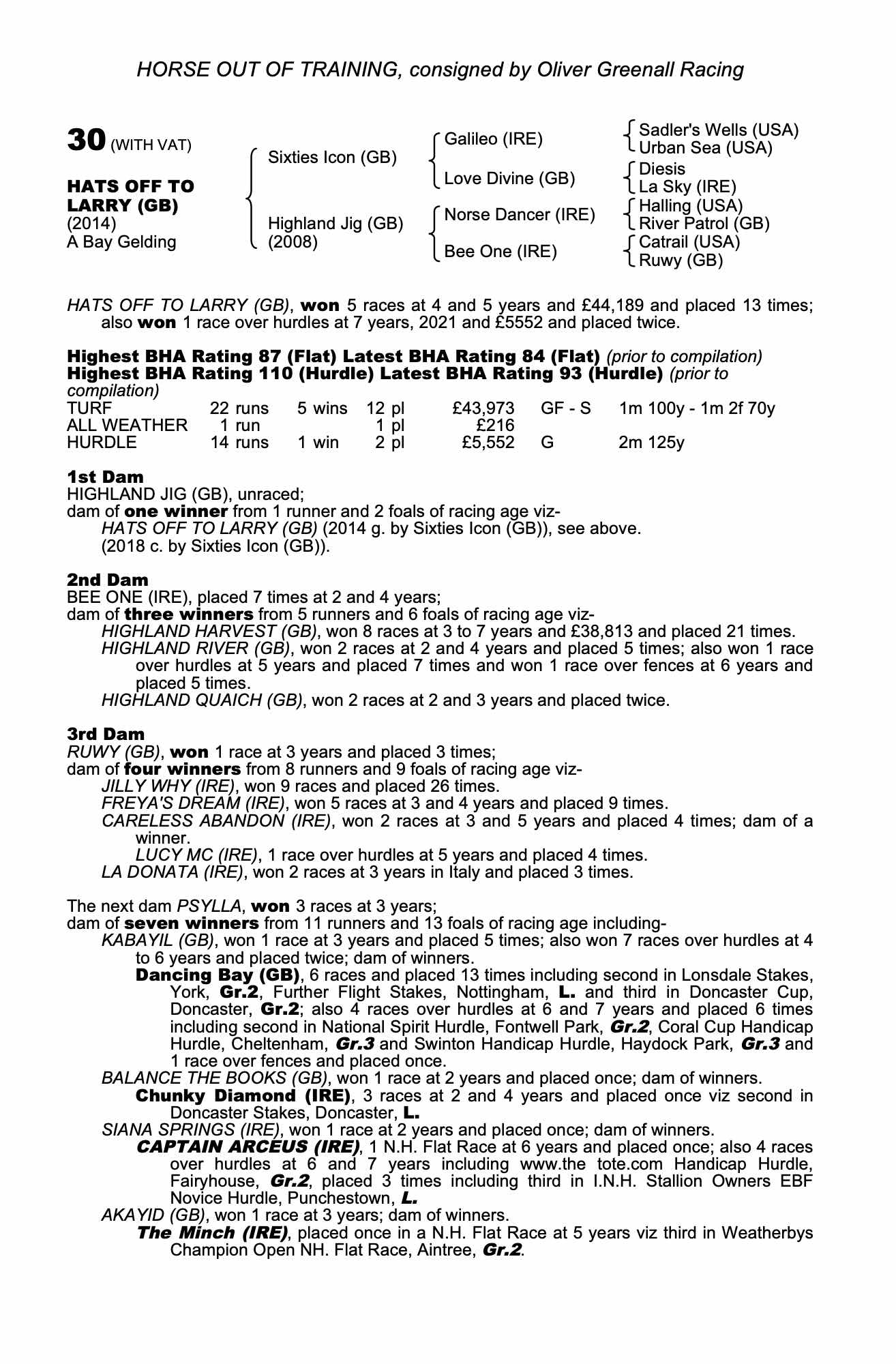 Consignor: Oliver Greenall Racing