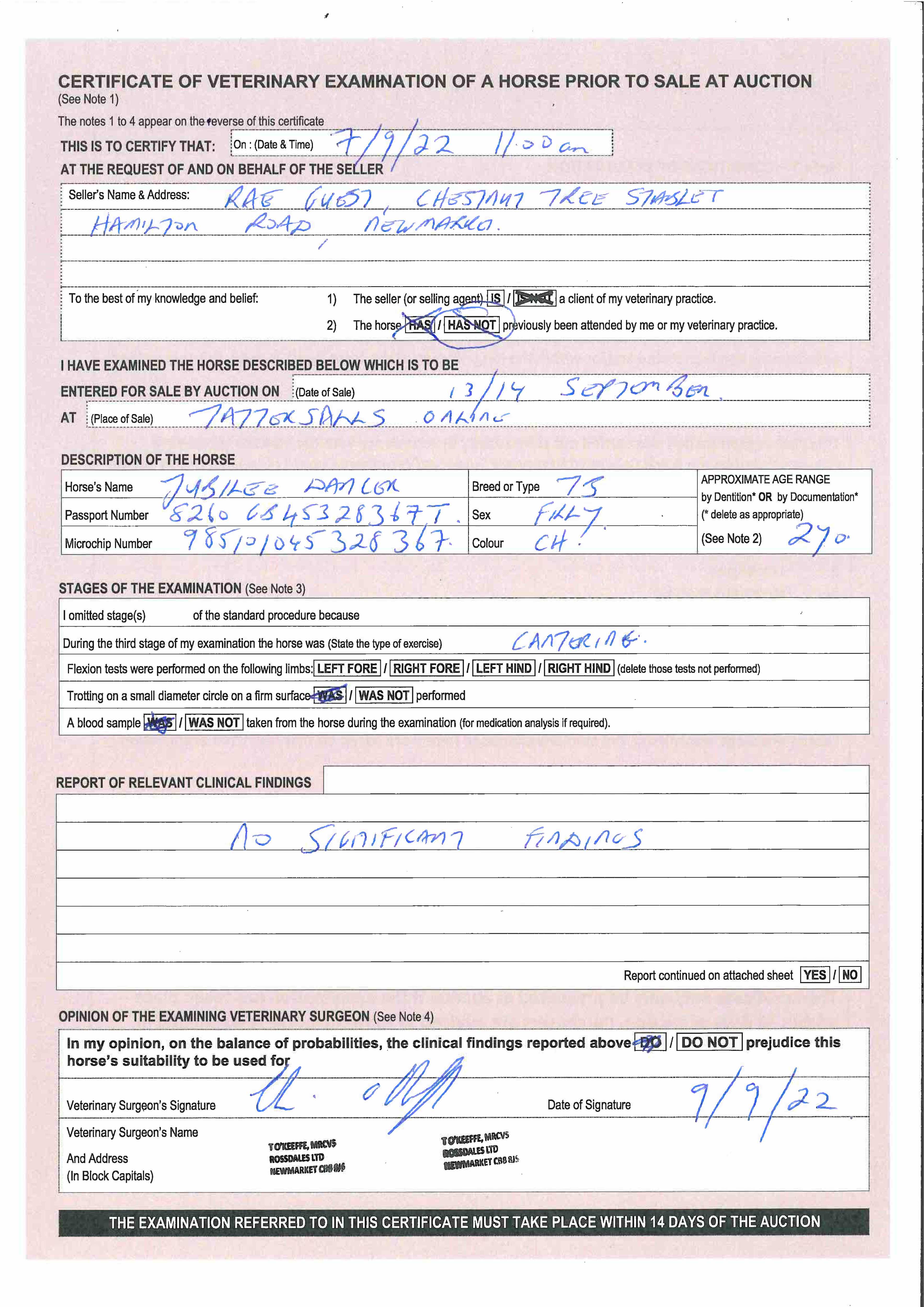 For time sensitive requests please call Tattersalls on +44(0)1638665931