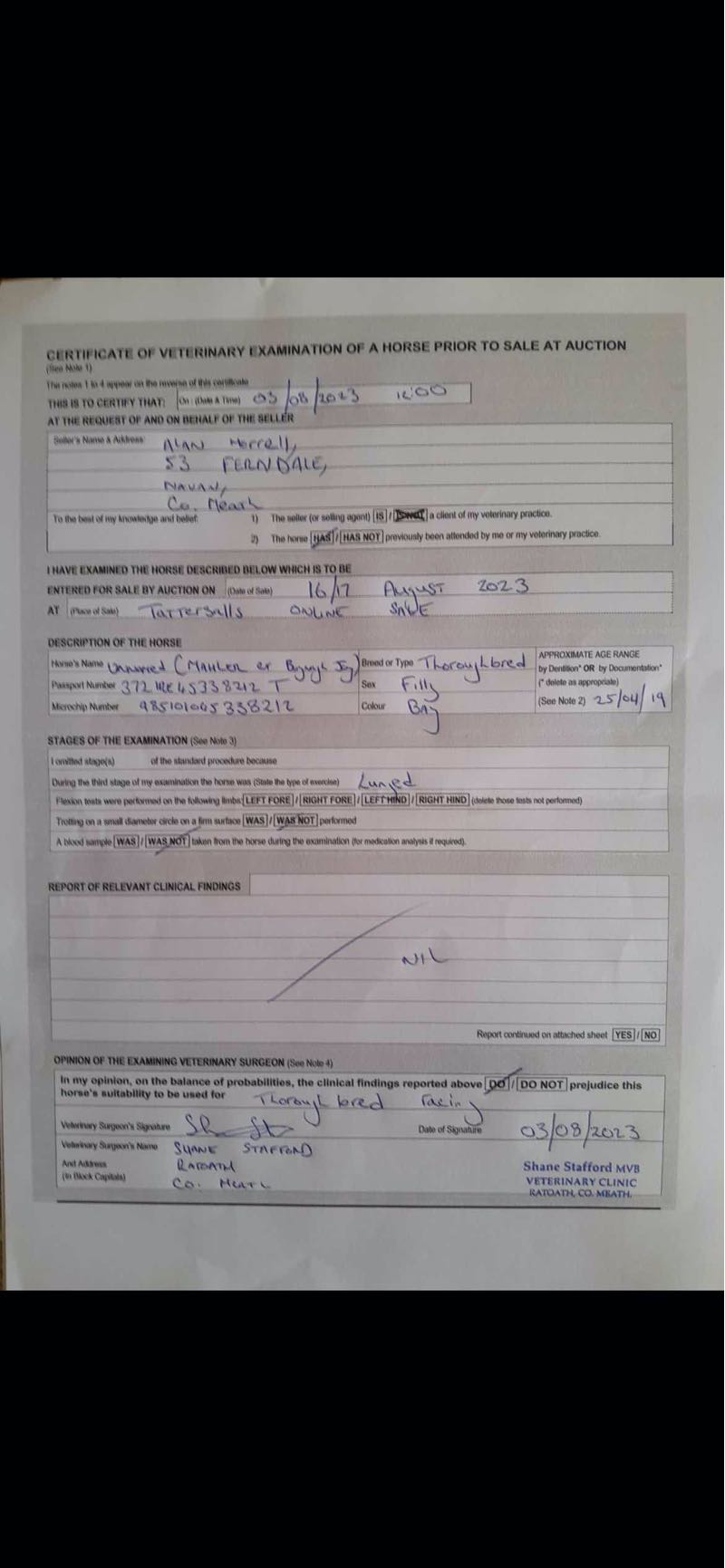 For time sensitive requests please call Tattersalls on +44(0)1638665931