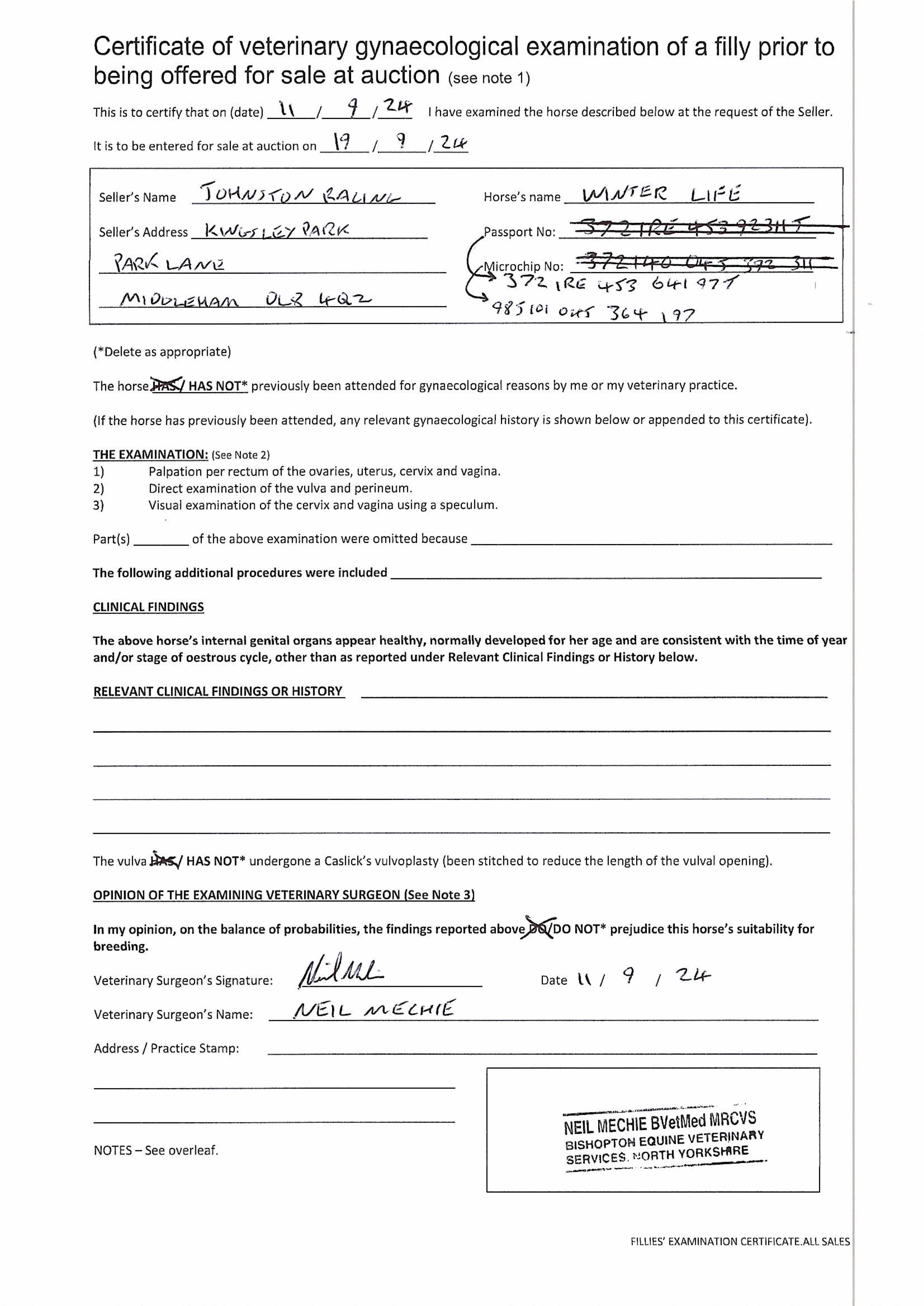 Vendor's Notes: Lightly raced, unexposed filly, placed in Maiden company. Plenty size and scope, possible dual purpose type.