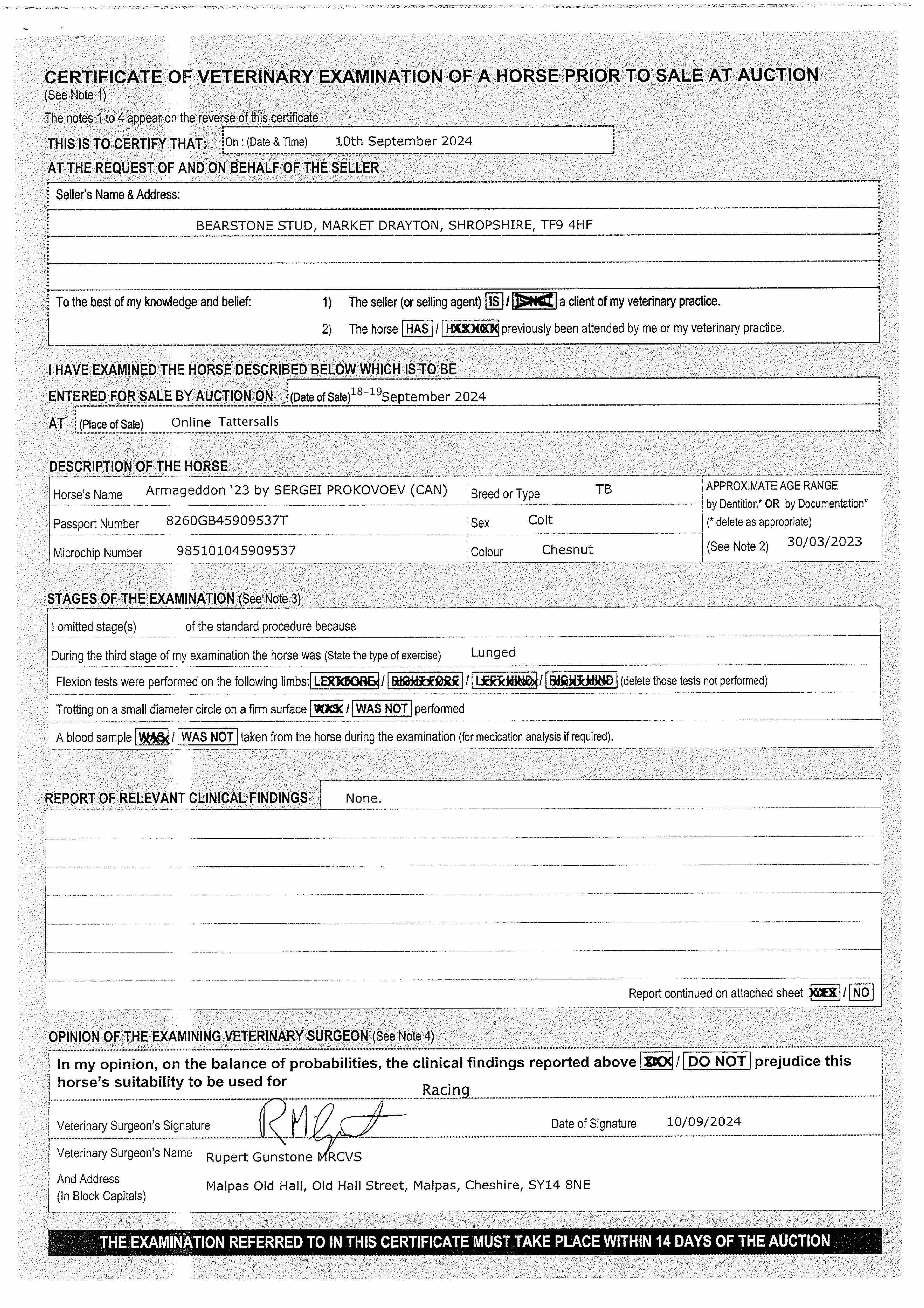 For time sensitive requests please call Tattersalls on +44(0)1638665931