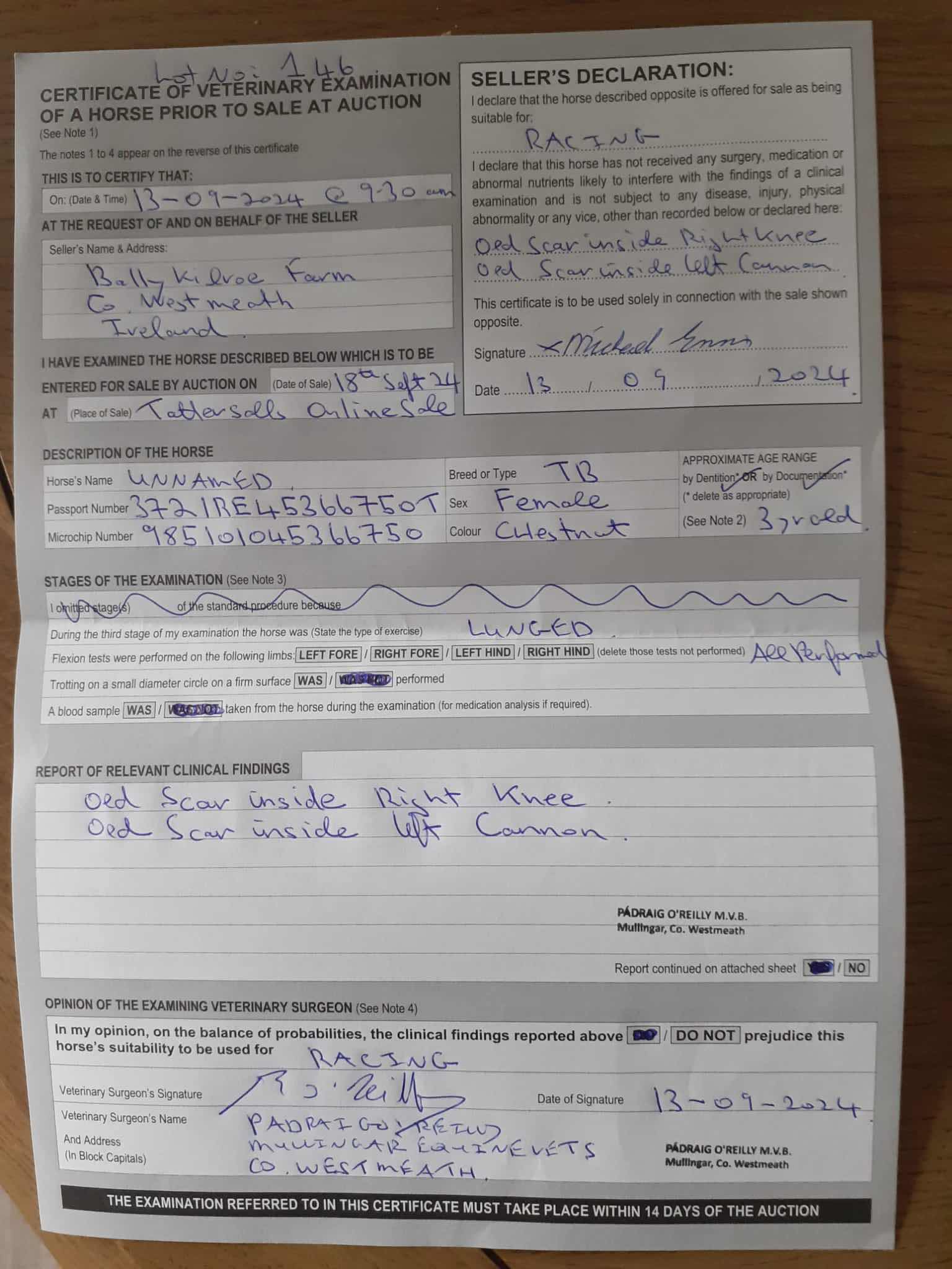 Online Sale - 25th October 2024 lot 141, Ballykilroe Farm, Ireland=>Lot Not Sold 900 gns