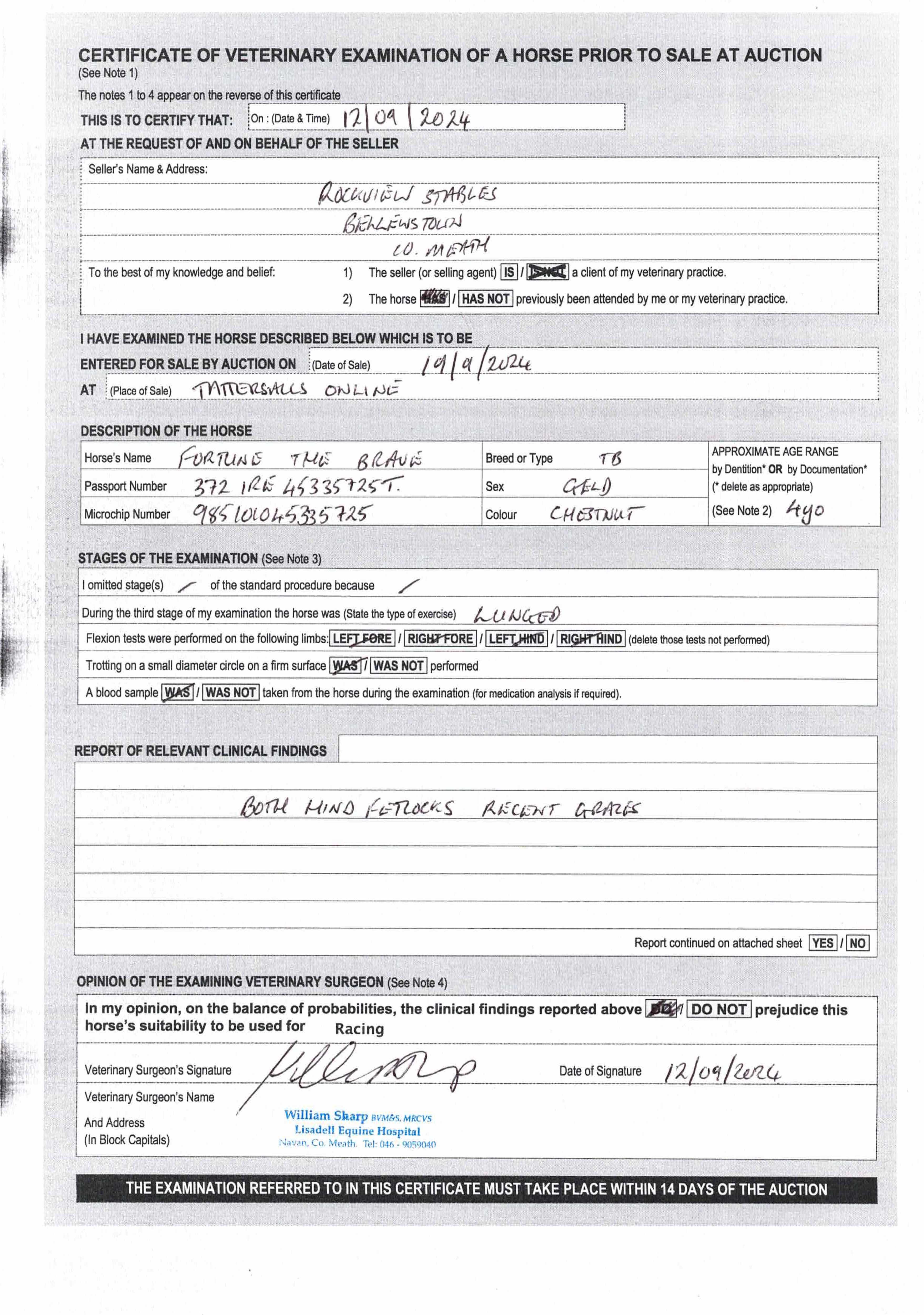 Vendor's Notes: Fortune The Brave (IRE) Ch.G. by Soldier of Fortune (IRE) x Better Back Bracka (IRE)