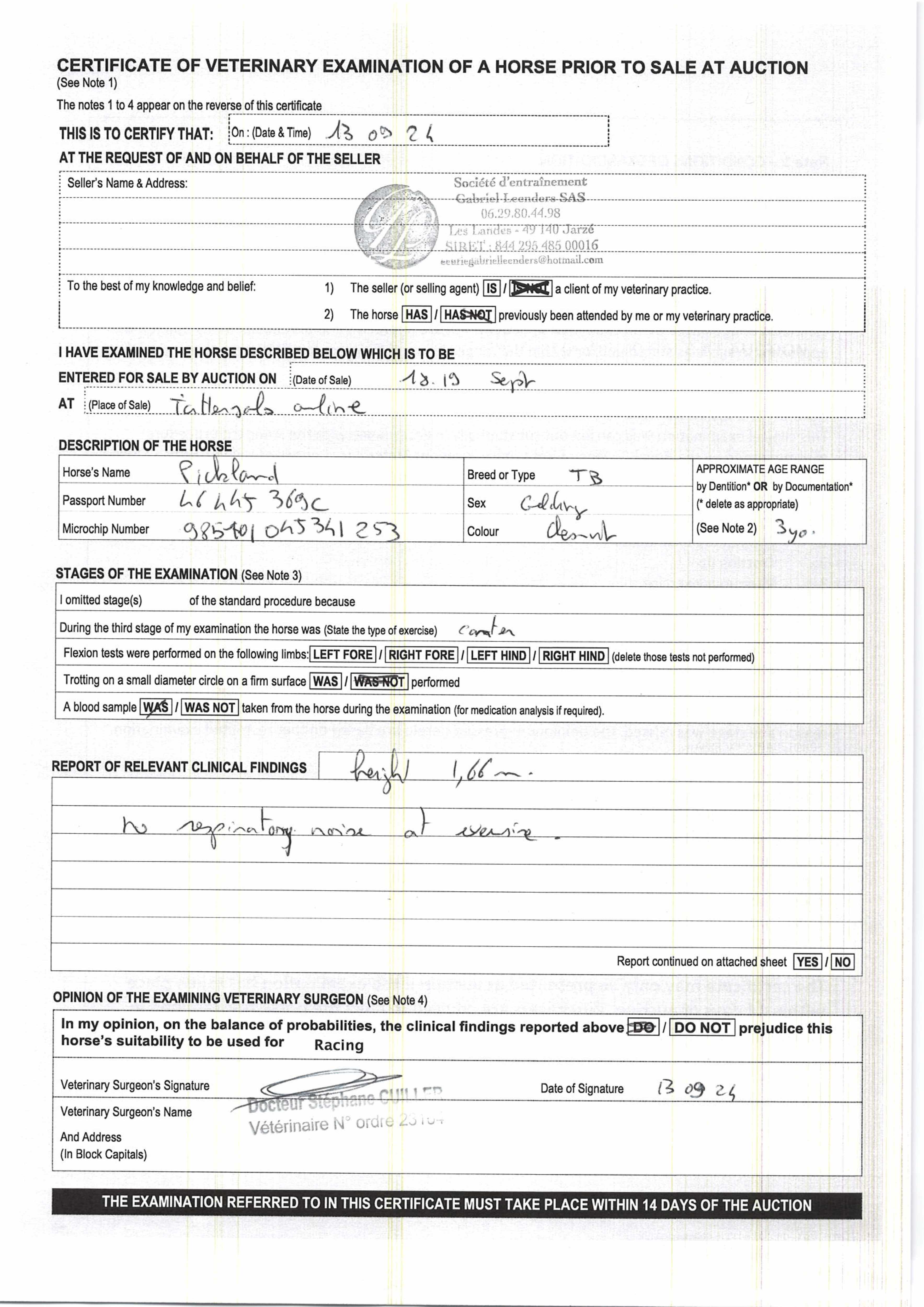 For time sensitive requests please call Tattersalls on +44(0)1638665931