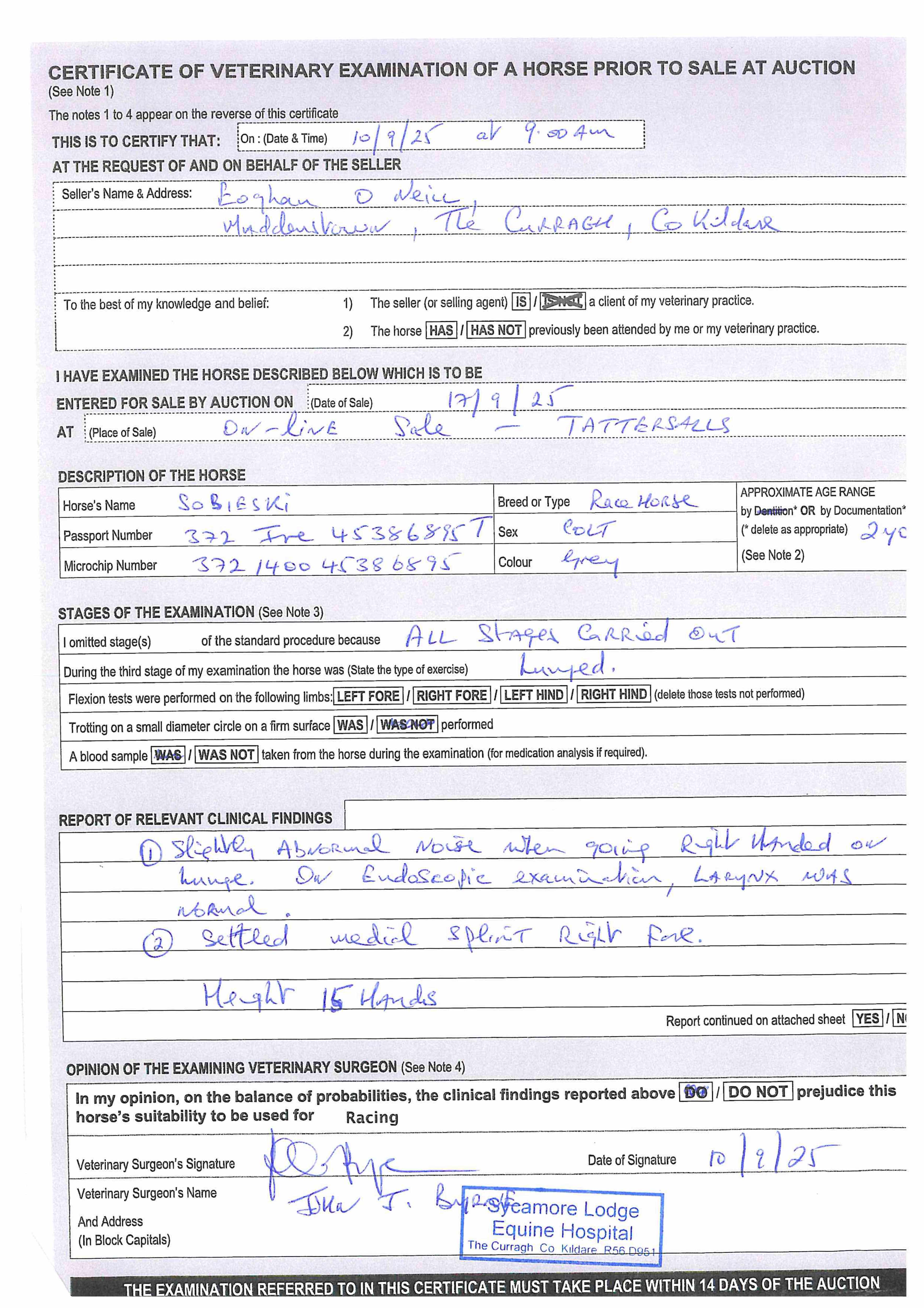 For time sensitive requests please call Tattersalls on +44(0)1638665931