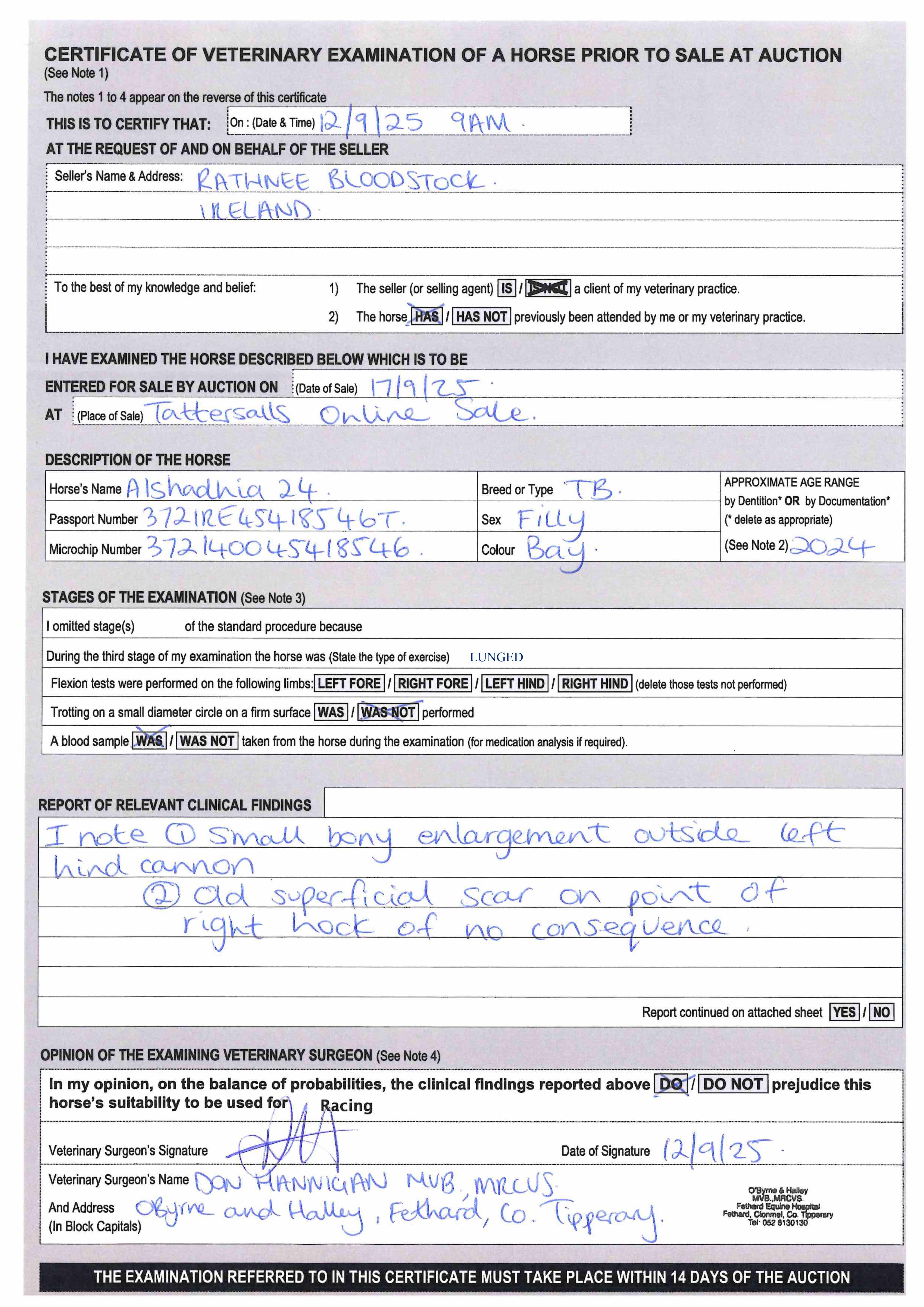 Contact: Cormac O'Flynn ✆ 00447765870520 ✉ rathneebloodstock@gmail.com