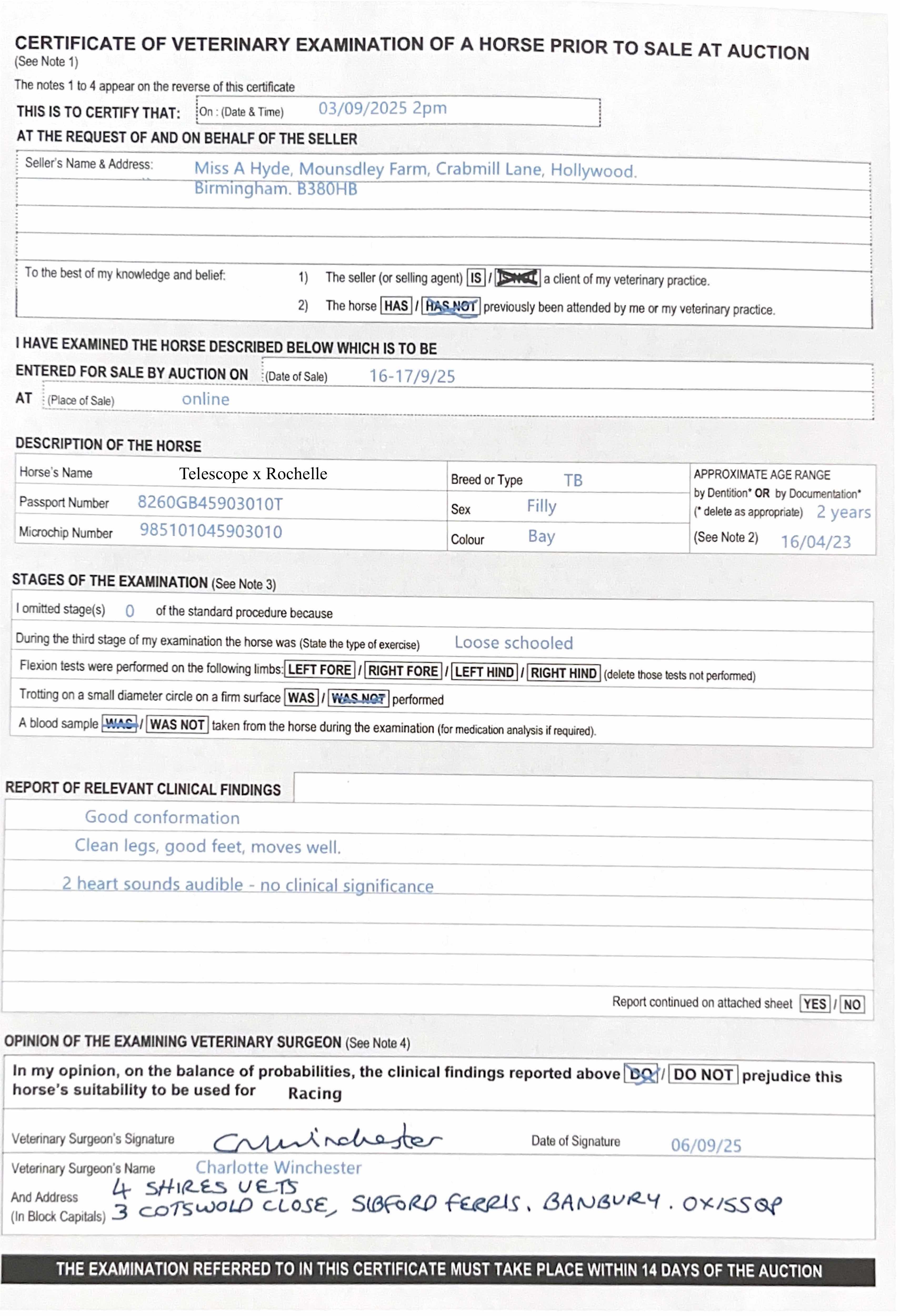 Vendor's Notes: Attractive well grown, athletic, correct, strong filly. 100% NH GBB