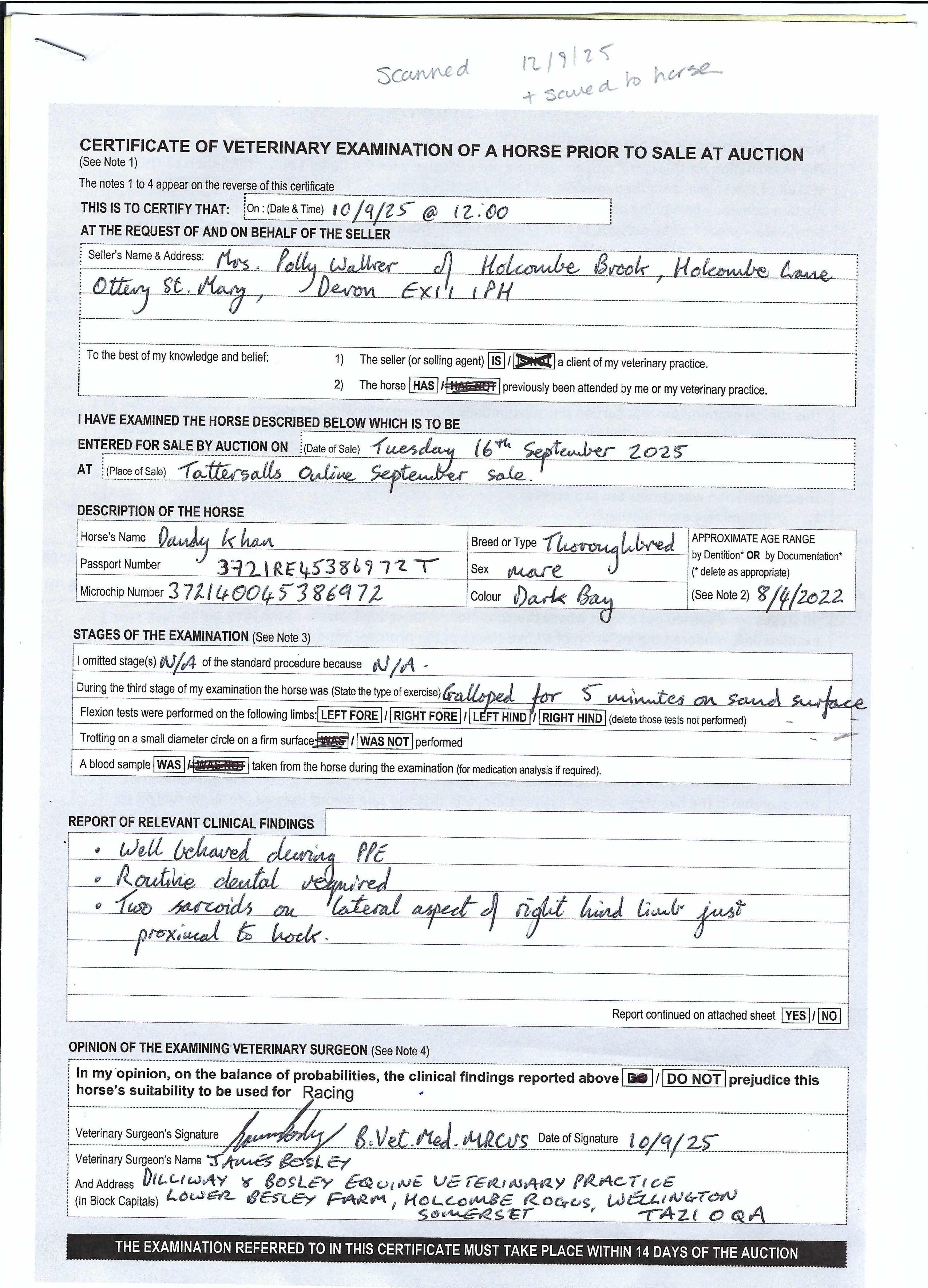 For time sensitive requests please call Tattersalls on +44(0)1638665931