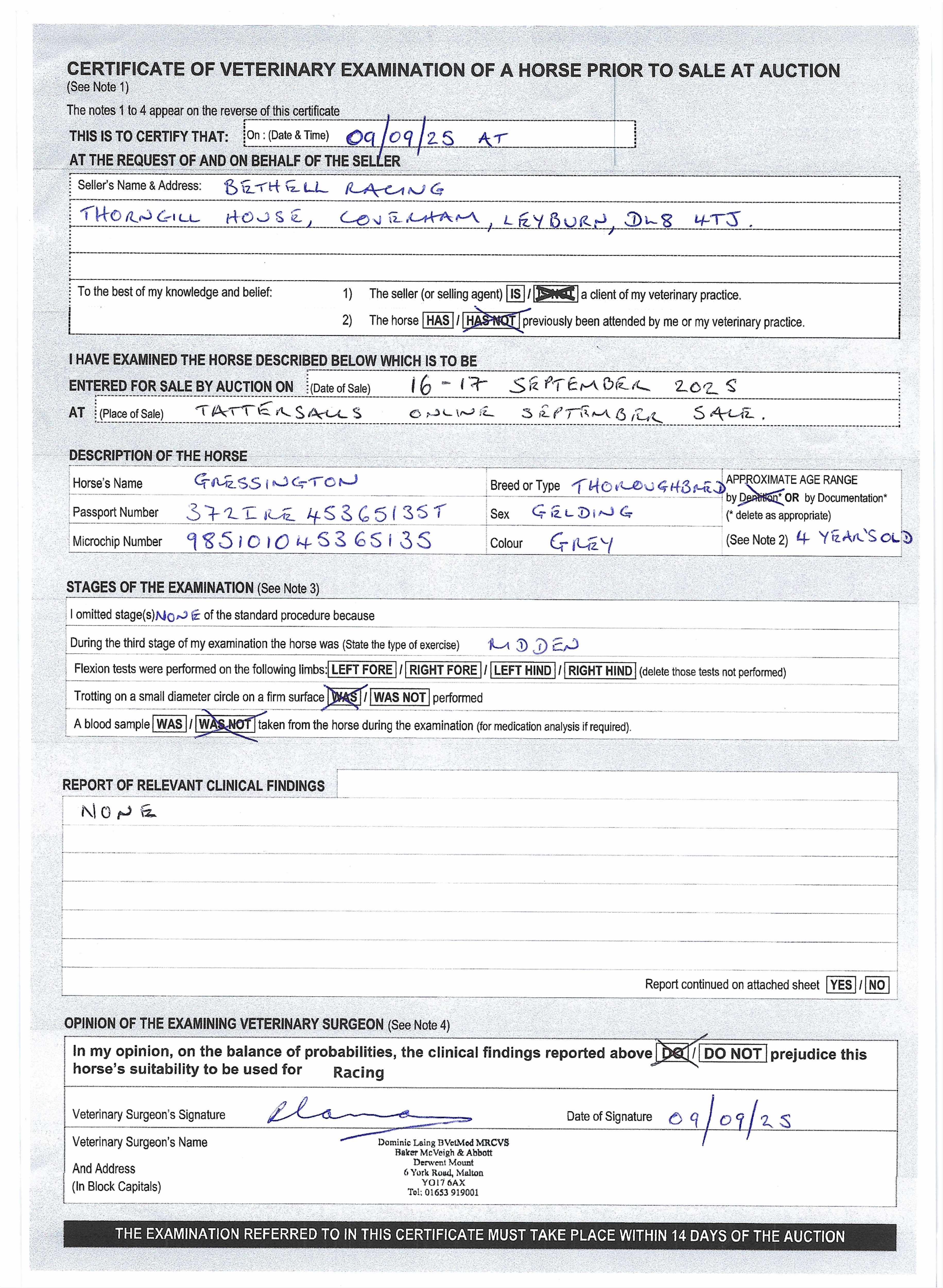 For time sensitive requests please call Tattersalls on +44(0)1638665931