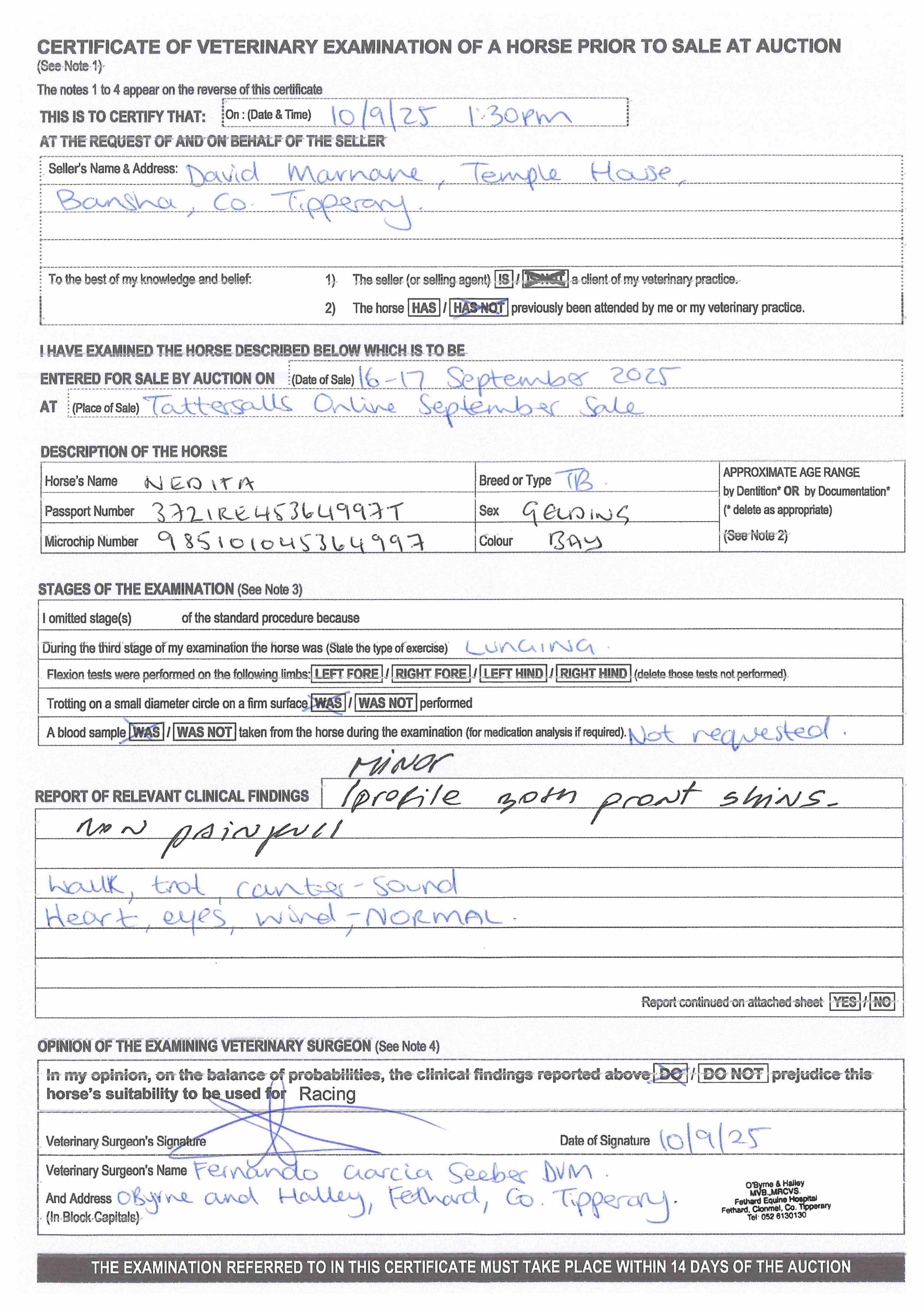 Vendor's Notes: Nedita is a very straight forward horse to train, with no vices.
