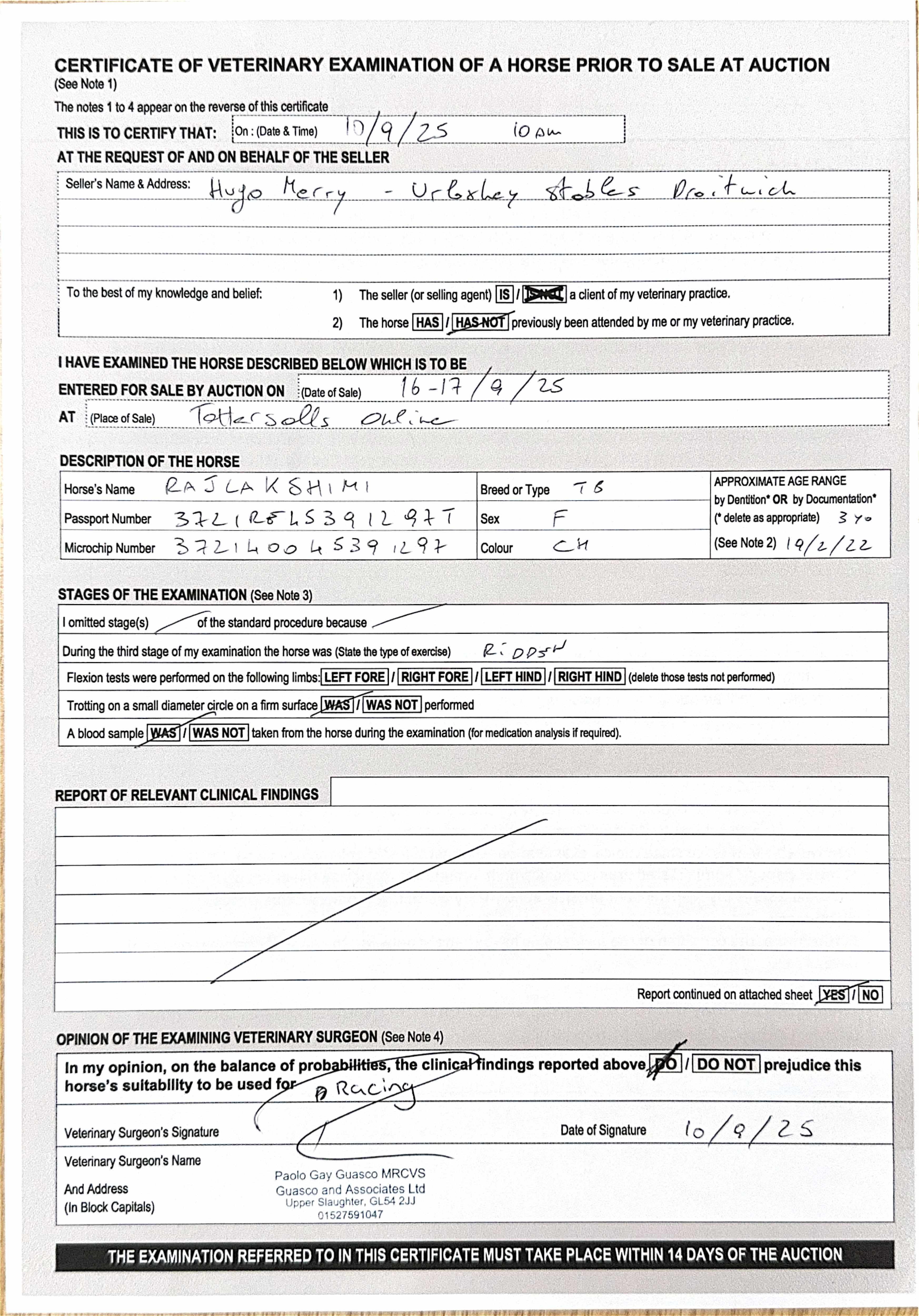 Consignor: Urloxhey Stables (R. Newland & J. Insole)