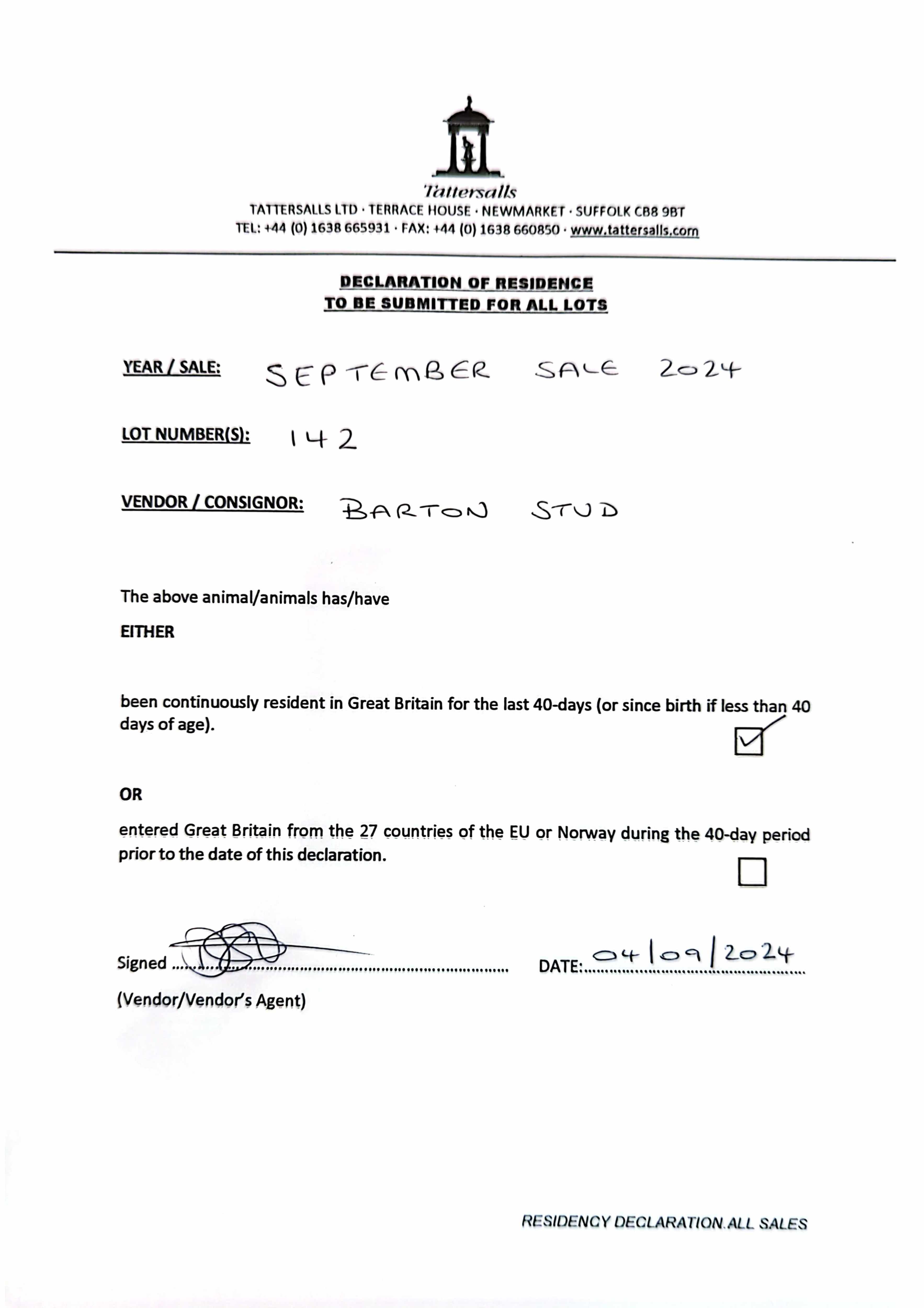 Consignor: Barton Sales