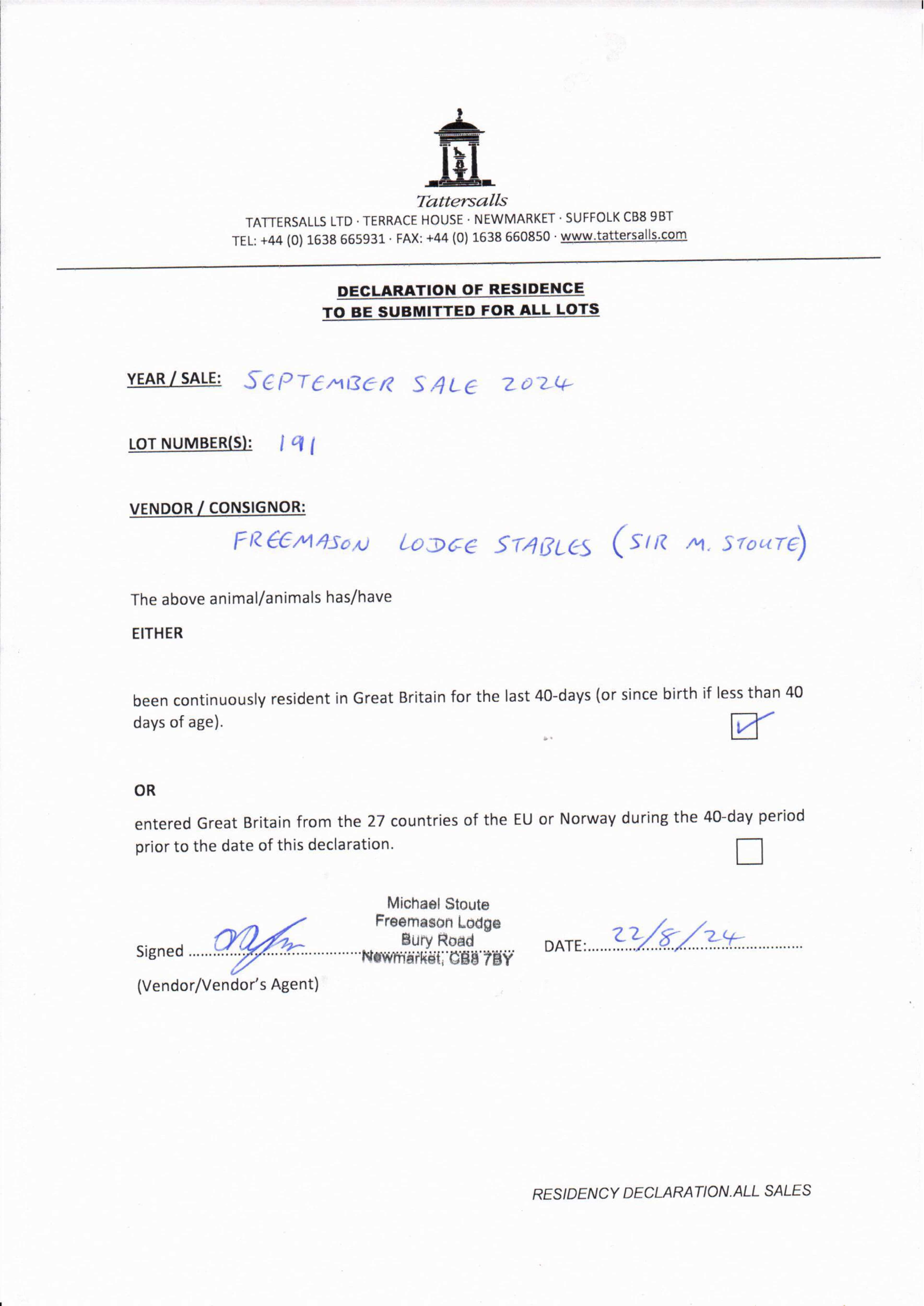 Consignor: Freemason Lodge Stables (Sir M. Stoute)