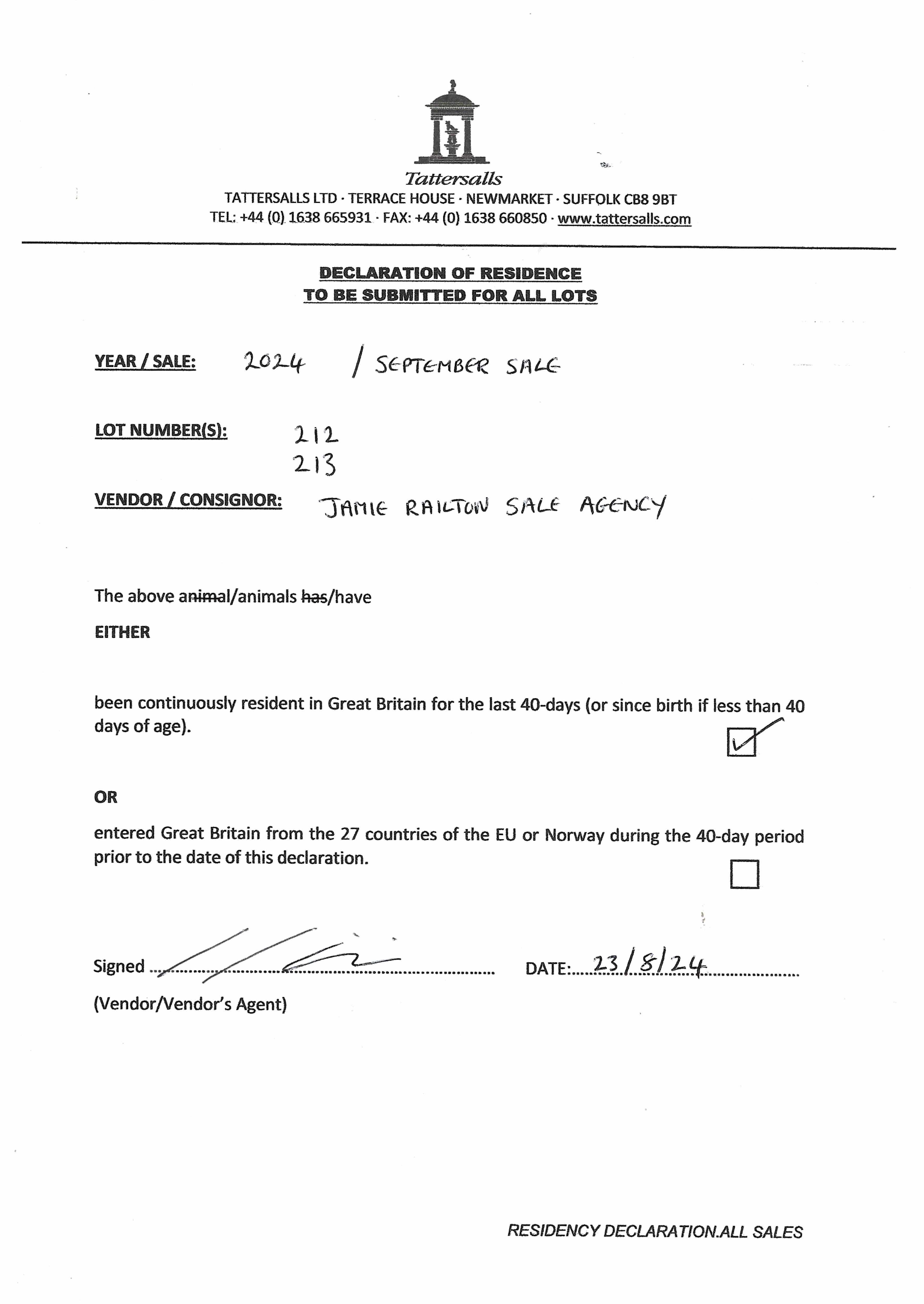 Consignor: Jamie Railton (Agent)